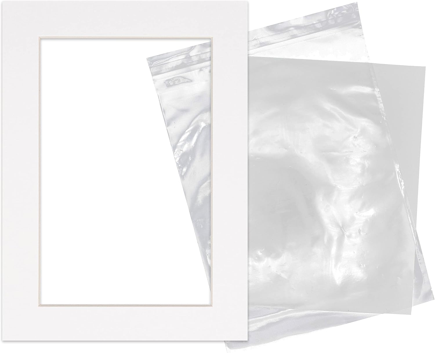 - THIS IS FOR A PACK of 10 Mats WITH Acid Free Backing Boards and Self-Seal Crystal Clear Bags, Featuring a picture opening for a 5x7 inch photo, and a 8.5x11 inch overall size. Picture openings are cut 0.5" smaller than the photo size advertised to overlap the photo and help keep it securely in the frame.