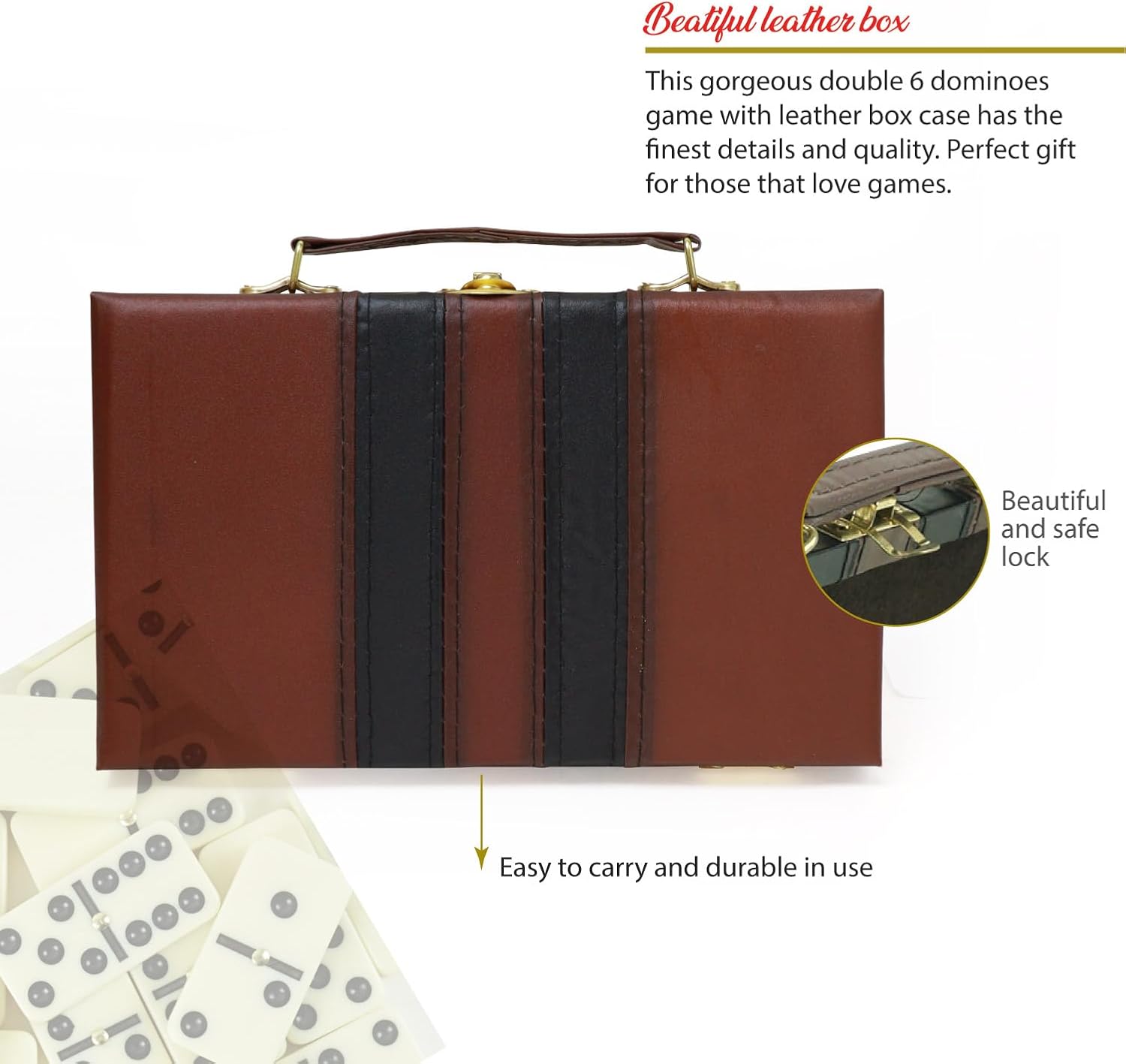 - Luxury Leather Storage Case for Travel & Storage – Keep your domino game safe and organized with a high-quality leather box that ensures portability. Perfect for family game nights, travel, and parties!