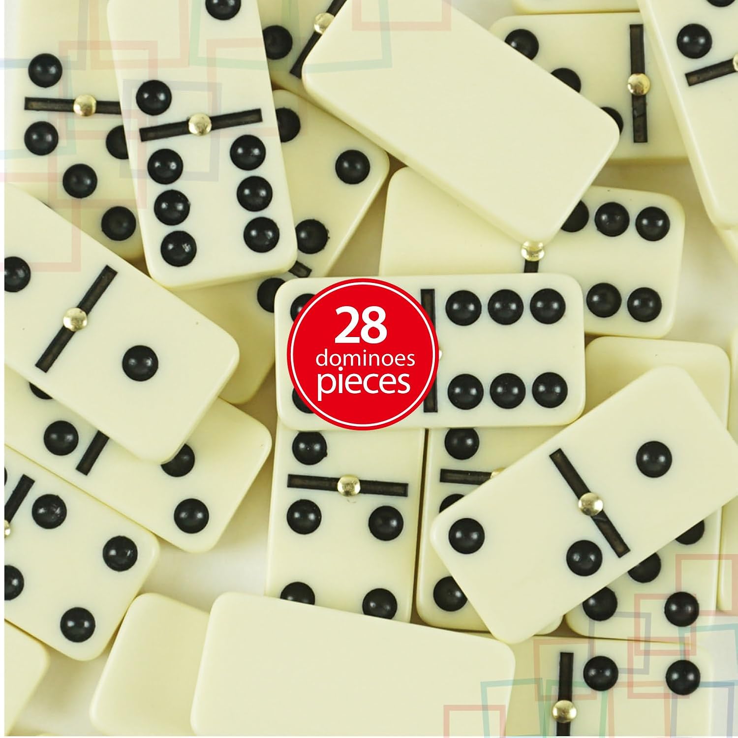 - Premium Double 6 Dominoes Set – This classic dominoes set includes 28 easy-to-read tiles made from durable material with a stylish metal spinner rivet for smooth handling and shuffling. Classic Tiles (1.96 x 0.98 x 0.39 in)