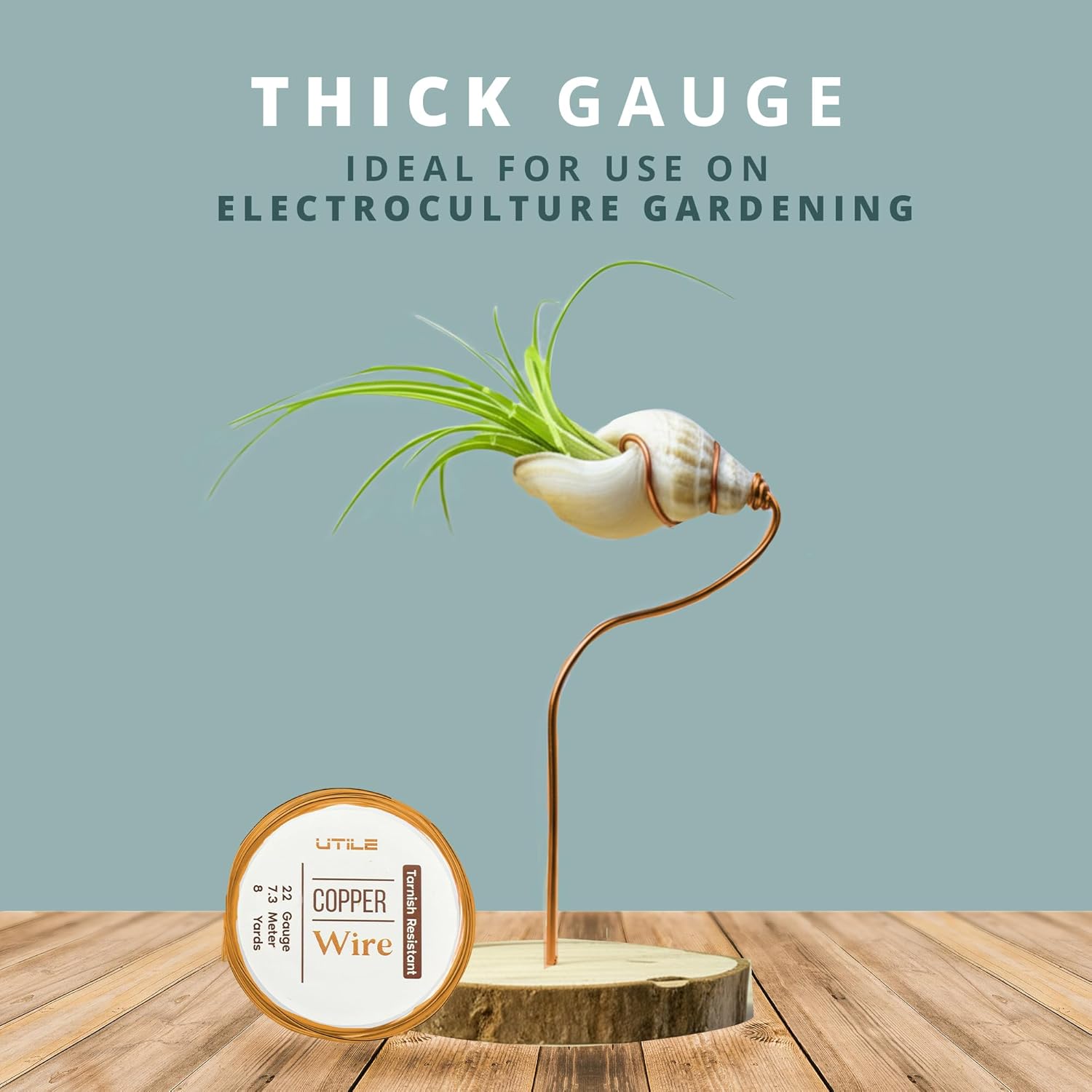 UTILE 18 20 22 24 Gauge 90 ft 99.9% Pure Soft Copper Wire for Electroculture Gardening, Jewelry Making, Crafting Wire Bendable, Plant Wire (Copper 22)