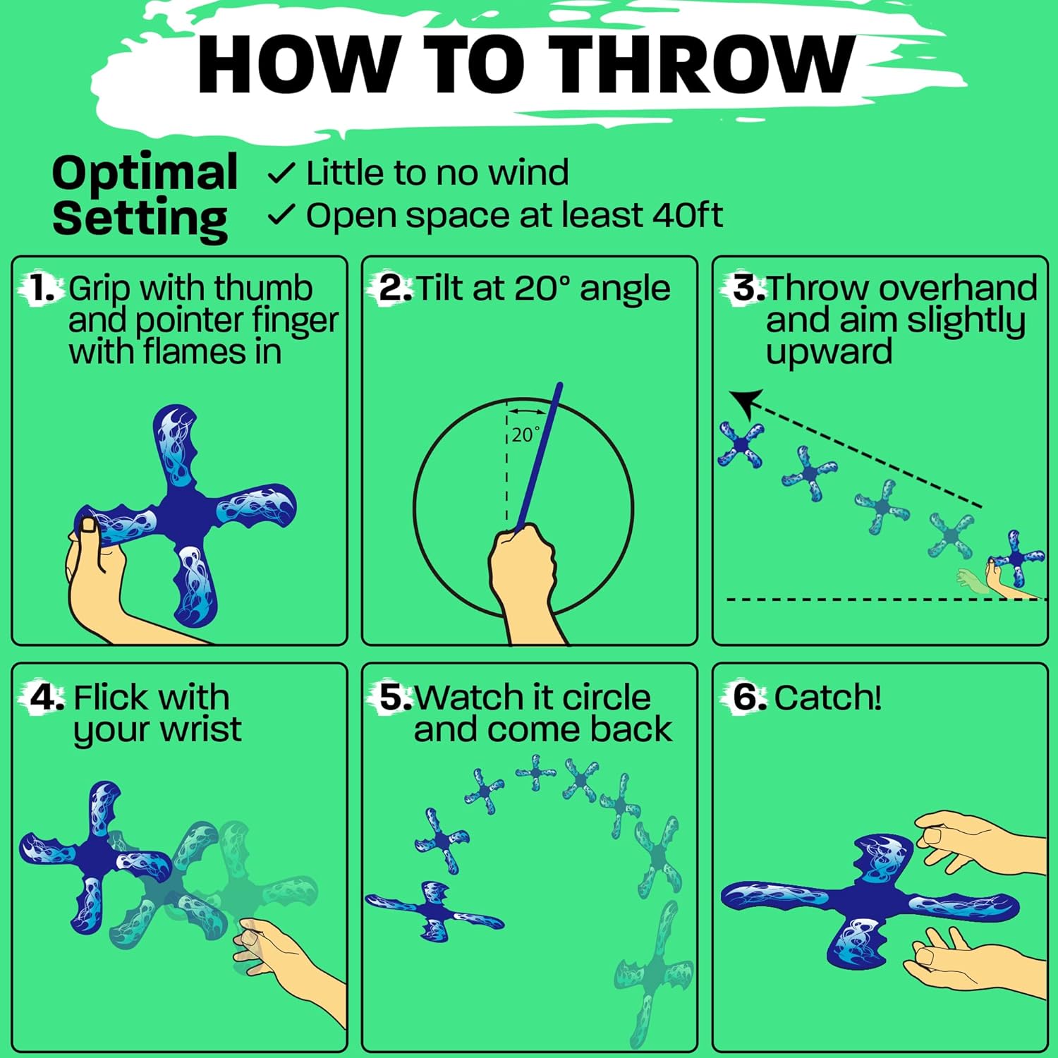 • ๐—˜๐—ฎ๐˜€๐˜† ๐—ง๐—ผ ๐—Ÿ๐—ฒ๐—ฎ๐—ฟ๐—ป: Embrace the simple joys of throwing a boomerang and having it come back to you with ease. With our beginner-friendly easy to throw design crafted from durable EVA foam. It's stable flight and comfortable grip make throwing and catching a breeze, ensuring a quick and enjoyable learning experience for kids age 6 and up.