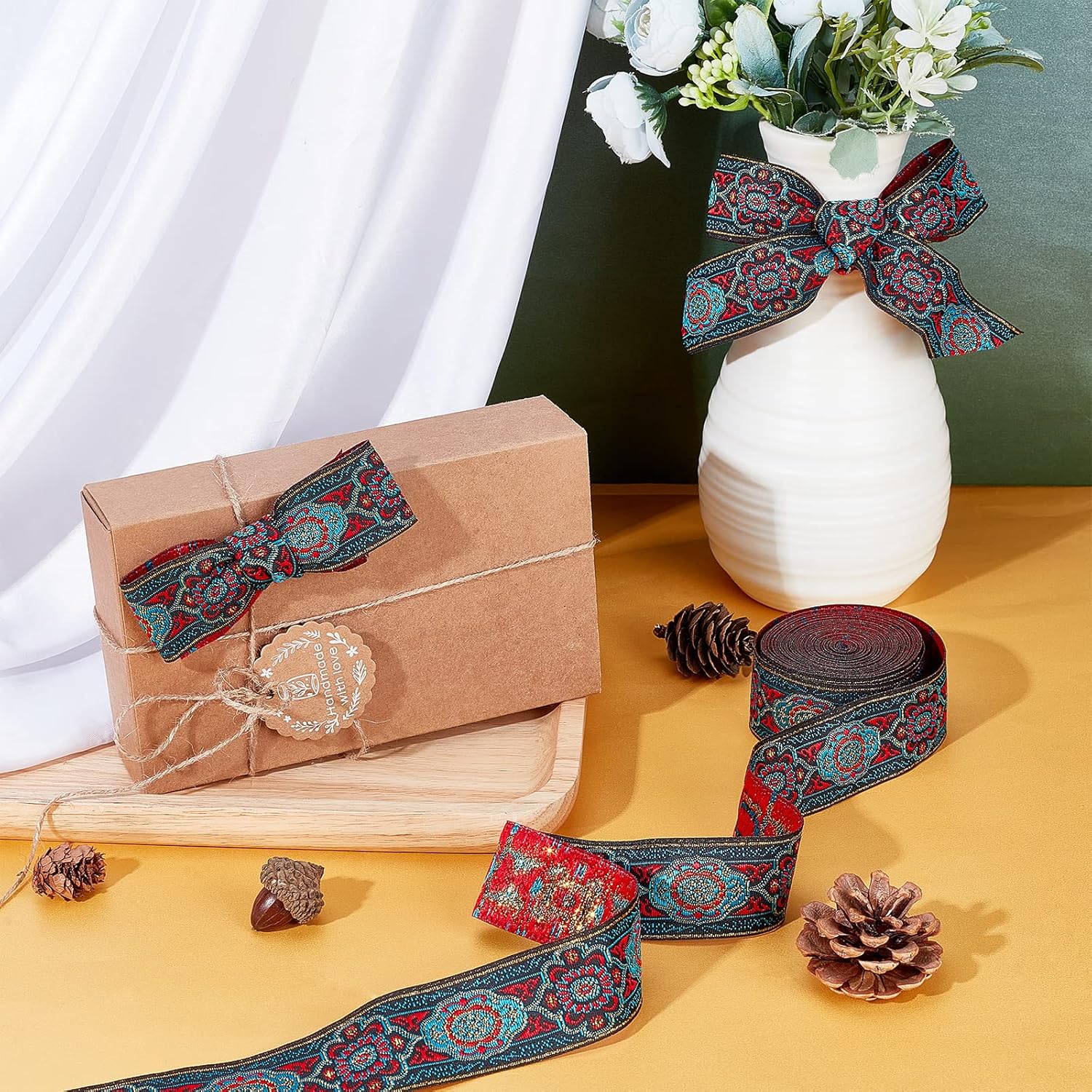 - Gift Wrapping: Good decoration ribbons on your DIY craft projects for gift wrapping, bridal, wedding, birthdays, valentine, anniversary to be more unique, national characteristics and retro atmosphere.