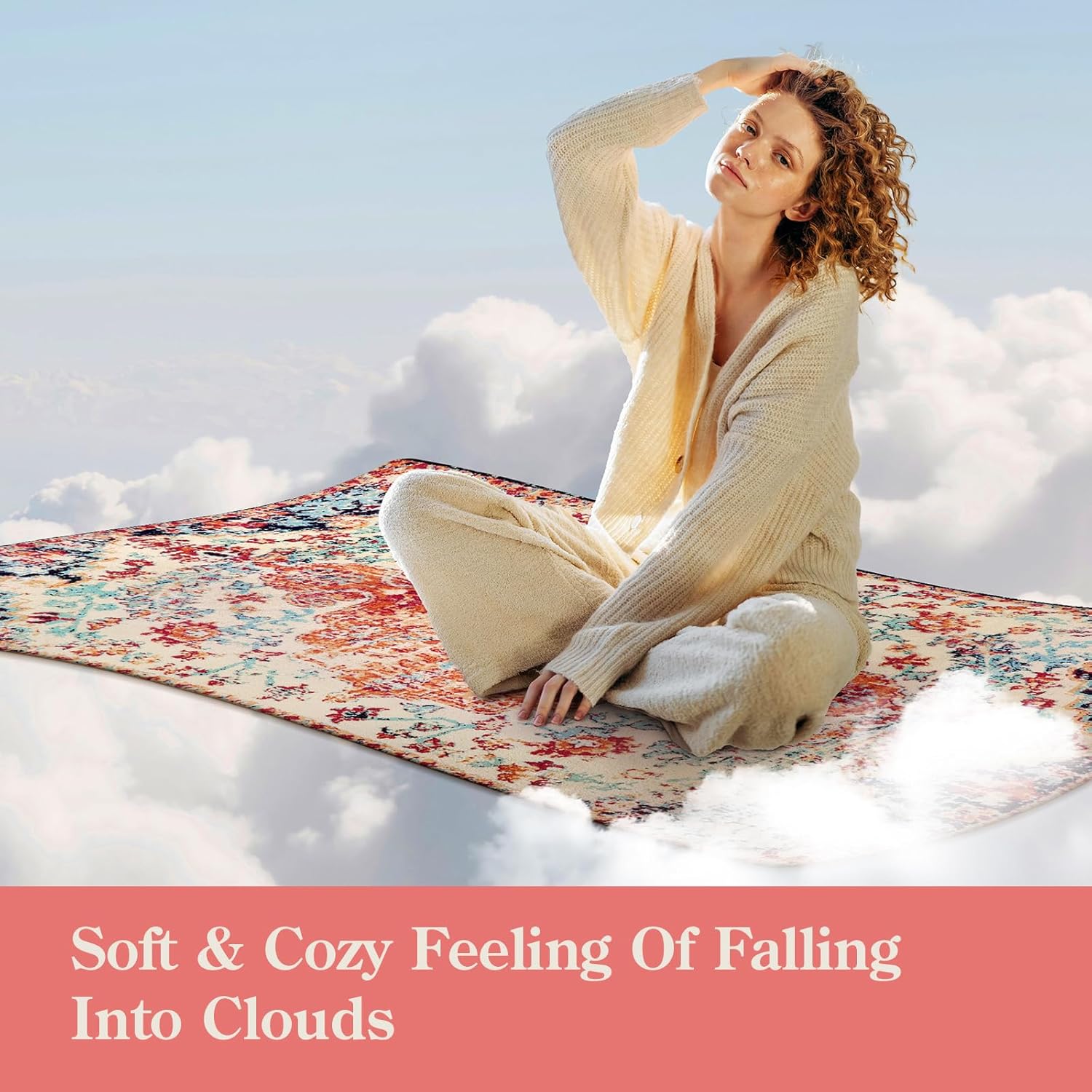 - [Exclusive Design Accent Rug] - The suitable way to brings a refreshing boost of color to your home, this bohemian floral medallion rug is a must-have for your home. It features a cream, orange, and navy blue design patterns with purposeful distressing to add vintage appeal to your space.