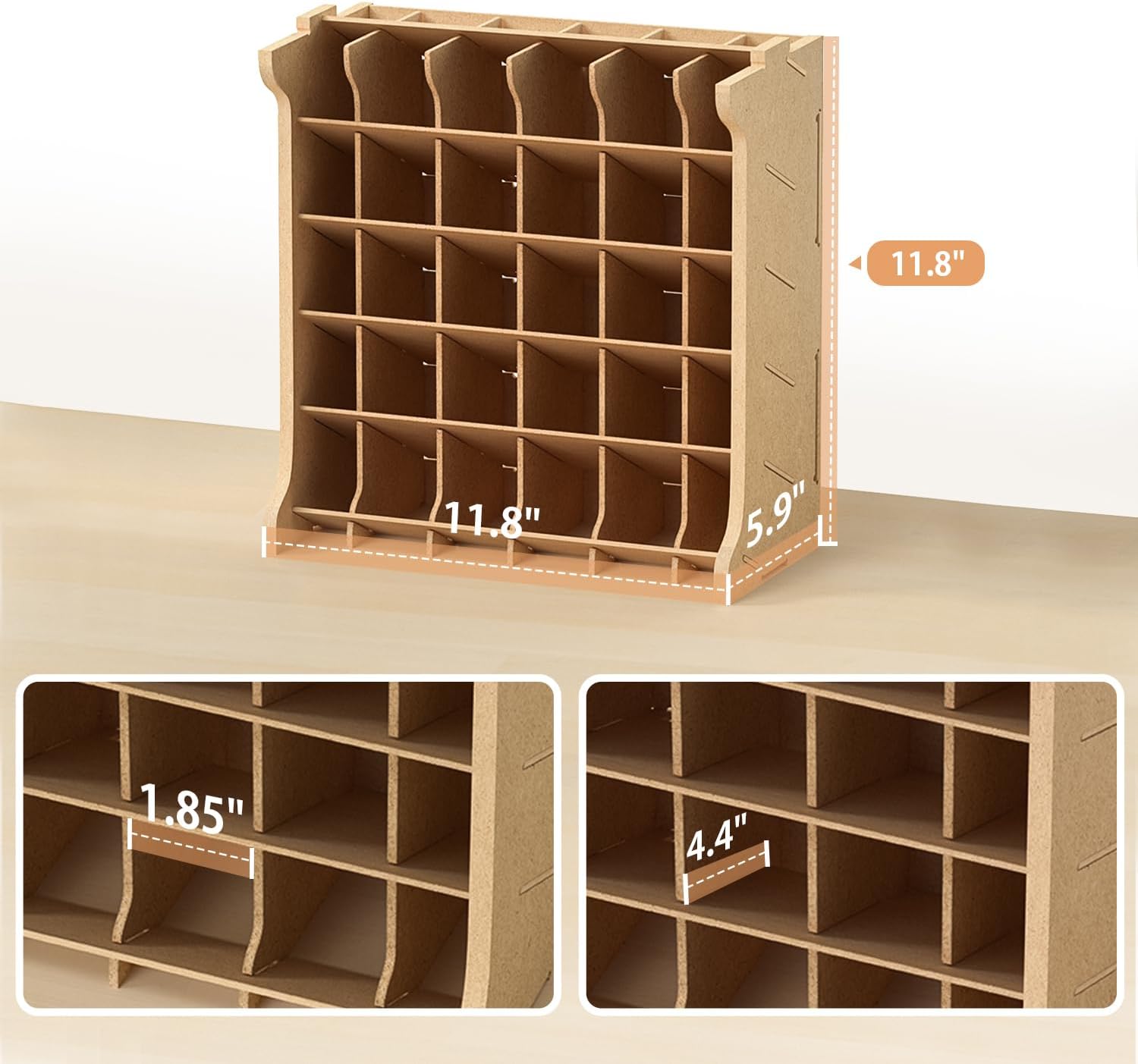 - Multifunctional Paint Rack--GK9 is 30cm long * 30cm high. There are 5 layers, 6 grids in each layer, 30 grids in total. Since each grid is 45mm*45mm, it can not only store bottles with a diameter of less than 45mm, but also store brushes, watercolor pens and other strip tools. The 30° angle design is very convenient for storage and access of paint or tools.