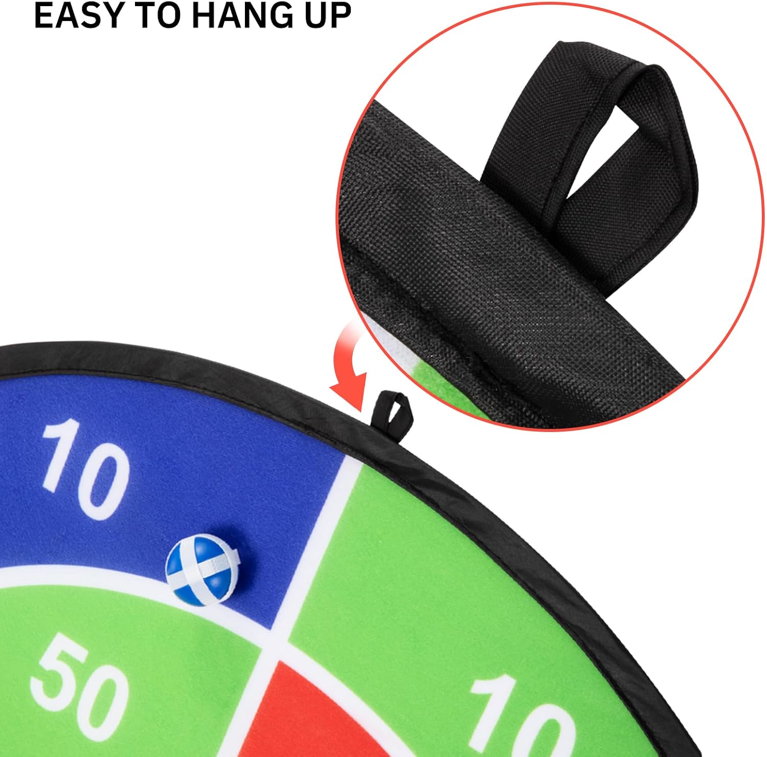- Large Board with 20 Sticky Balls: The dart board is 29 inches in diameter, which is interesting for kids or dartboard play beginners. The sticky balls have strong stickiness. Package includes: 1*large board, 20*sticky balls (4 color) with rich accessories