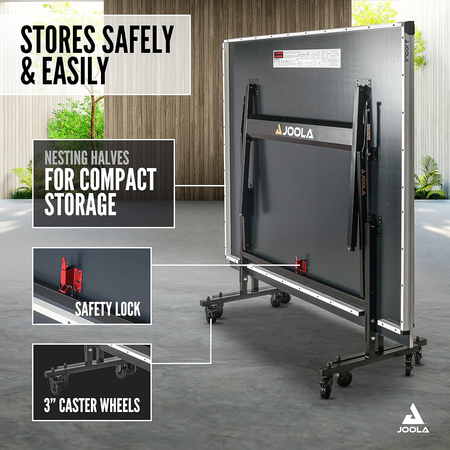 - ARRIVES READY TO PLAY IN MINUTES: Boxed to be delivered in perfect condition. Setup takes 10 minutes, simply unwrap the protective packaging, attach the legs, clip on the net & you are ready to play! Visit our store for JOOLA paddles, balls, & robots