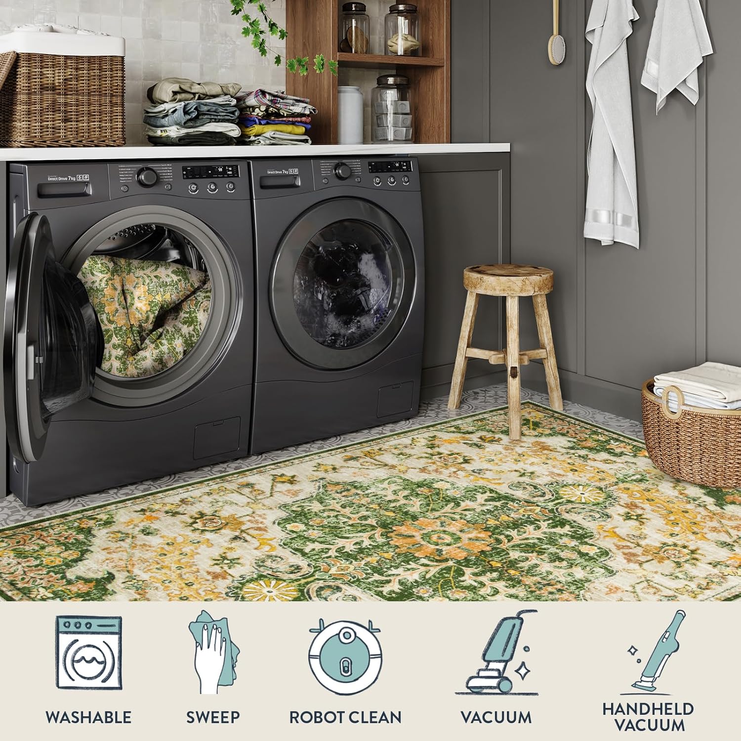 - [Exclusive Design Accent Rug] - The perfect way to brings a refreshing boost of color to your home, this bohemian floral medallion rug is a must-have for your home. It features a yellow, green, and orange design patterns with purposeful distressing to add vintage appeal to your space.