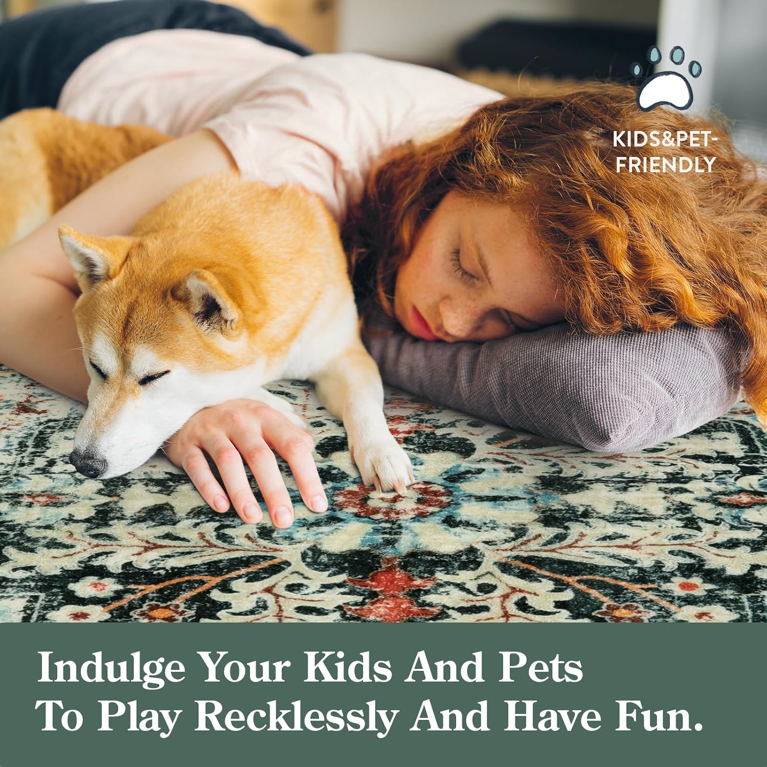 - [Soft & Skin-Friendly] - Our rugs for living room 5x7 made of faux wool, if you walking barefoot on the carpet, you will have the feeling of stepping on clouds! All of our washable rugs have passed Environmental Certification. You can be sure that our area rugs are ECO-friendly and skin-friendly
