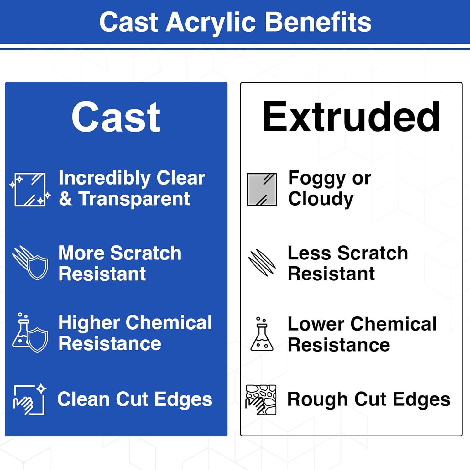 • EASY TO CUT OR DRILL - These 1/8 inch acrylic panels are easier to work with than glass and strong enough for load-bearing designs. In addition, they can be cleanly cut or drilled using a table saw, router, CNC, or laser without chipping or cracking