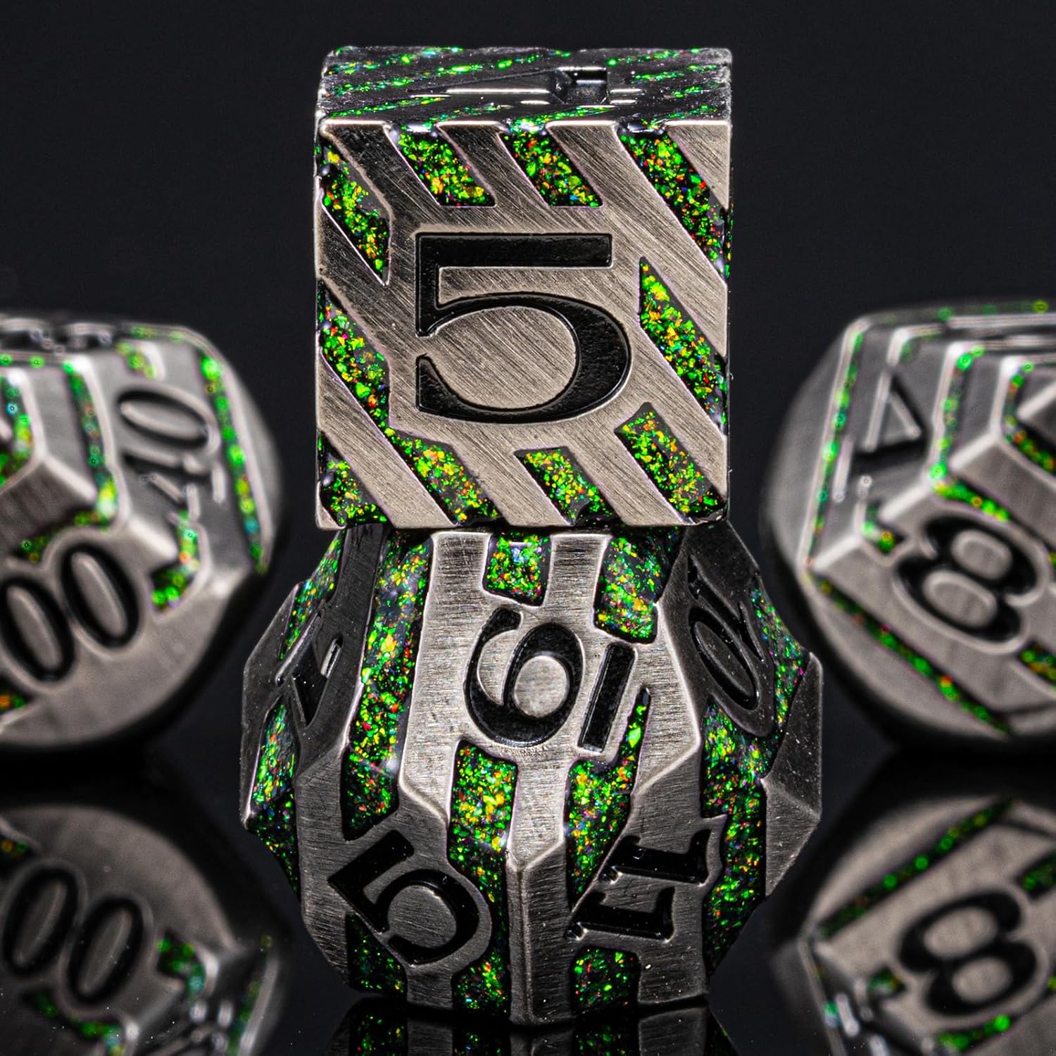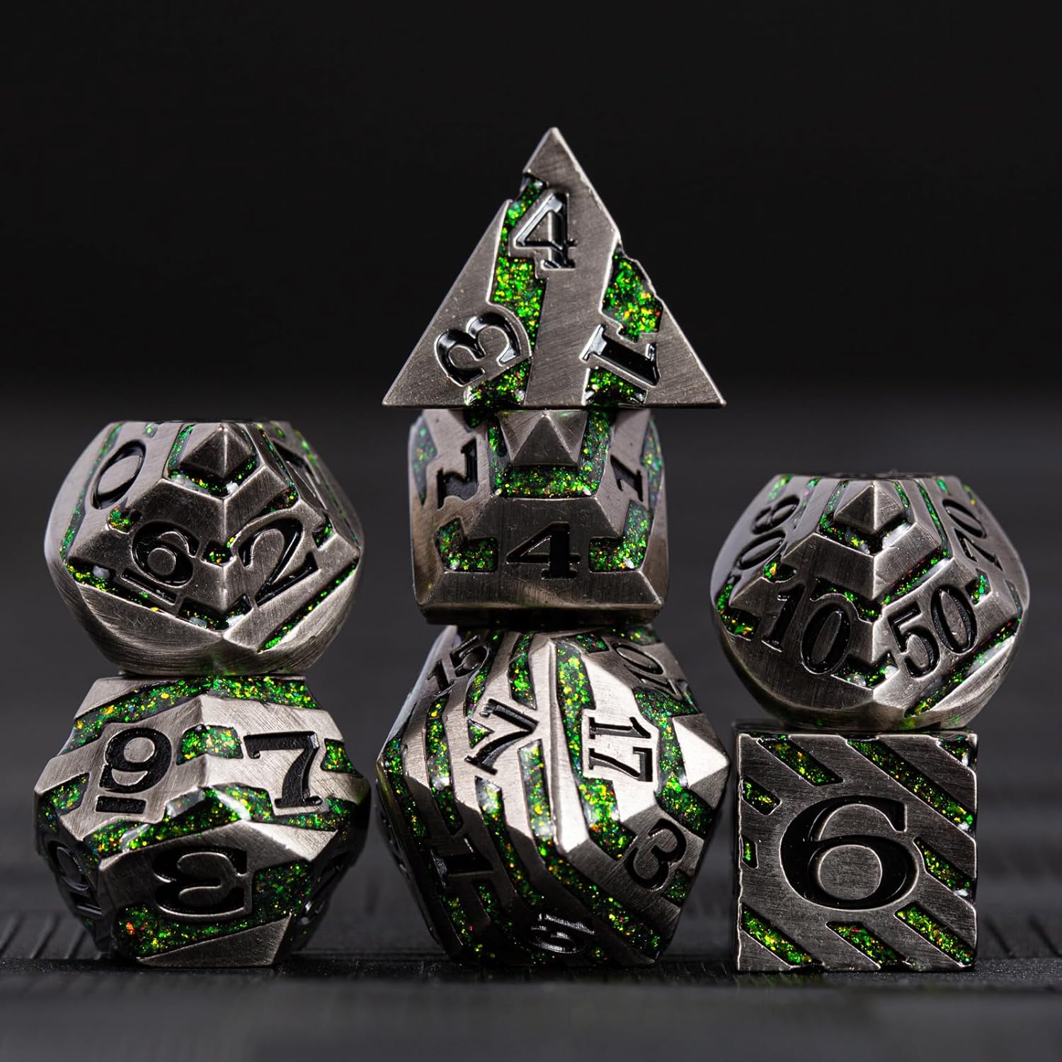 Stripe Metal Dice Set D&D,7PCS Solid Metal Glitter Dice with Gift Box,RPG Polyhedral Dice Set for DND Table Game