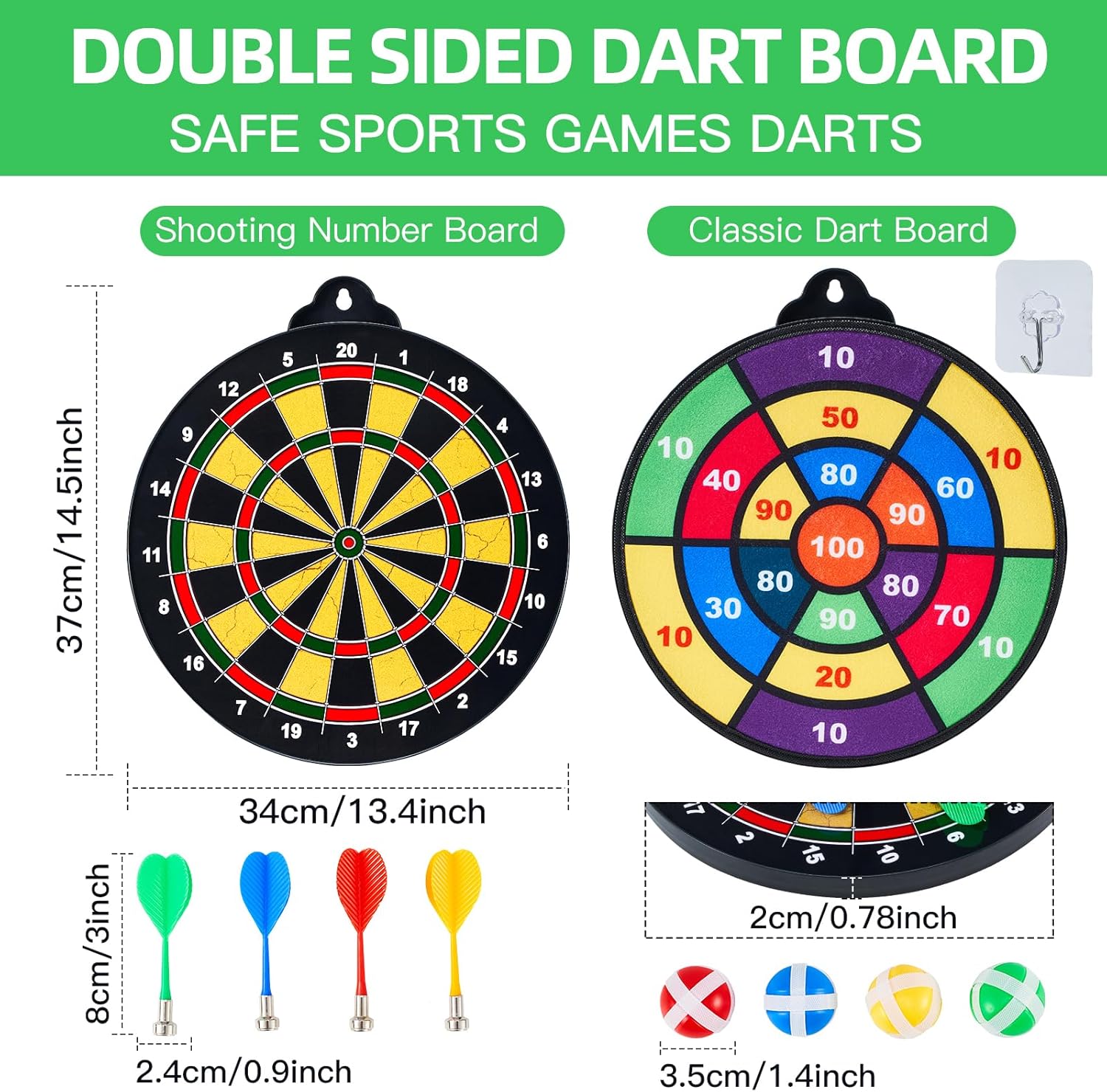 - [2 IN 1 Fun DartBoard Game]:This double-sided magnetic darts board can get two game rules on one board,a traditional standard magnetic dartboard on the iron side, and a sticky ball dartboard game on the fabric side,bring you a different gaming experience.Our products are certified to meet international safety standards for children's toys. We go above and beyond in testing and safety