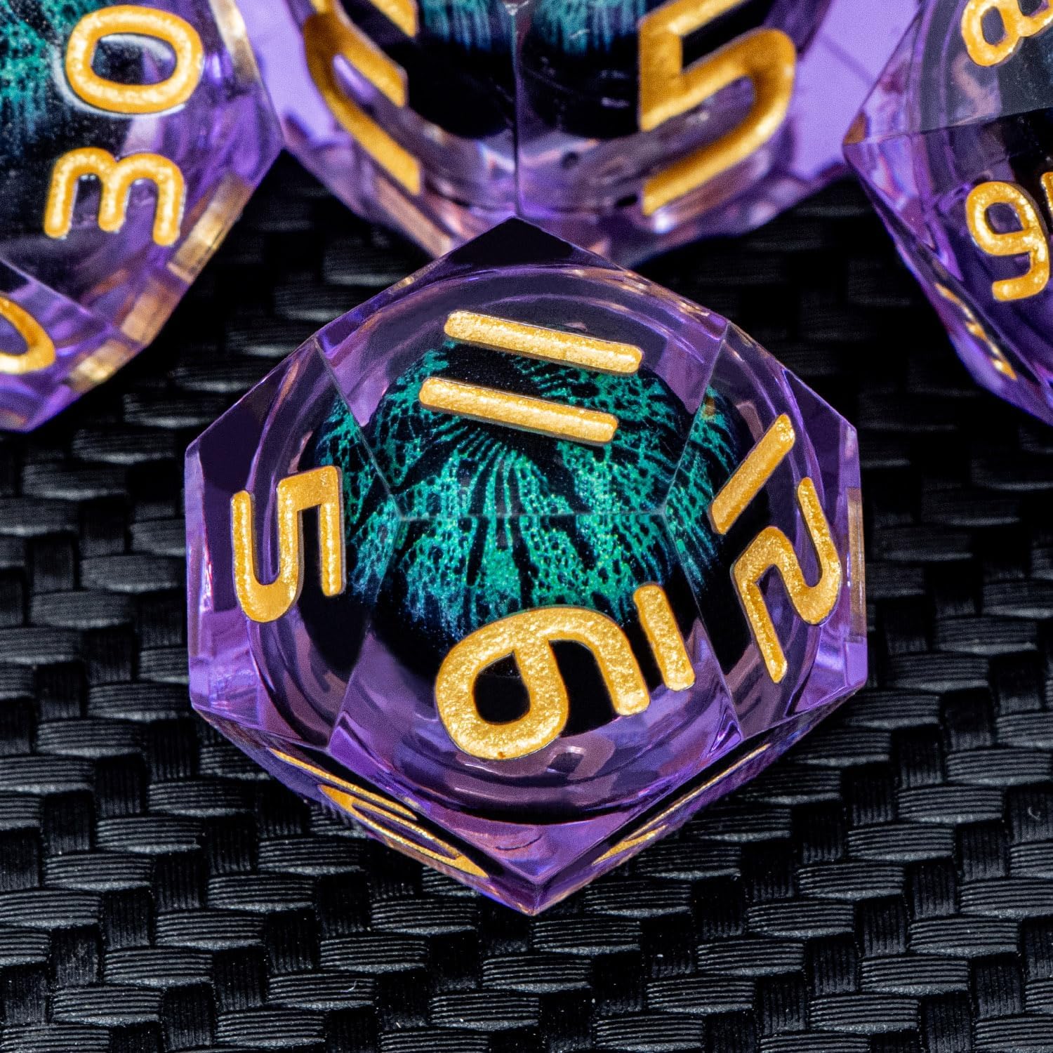ARUOHHA Dragon Eye DND Dice, Purple Green Resin Sharp Edged Dice Set RPG Role Playing Game, Liquid Core Polyhedral D and D Dice Set D20 D12 D10 D8 D6 D4