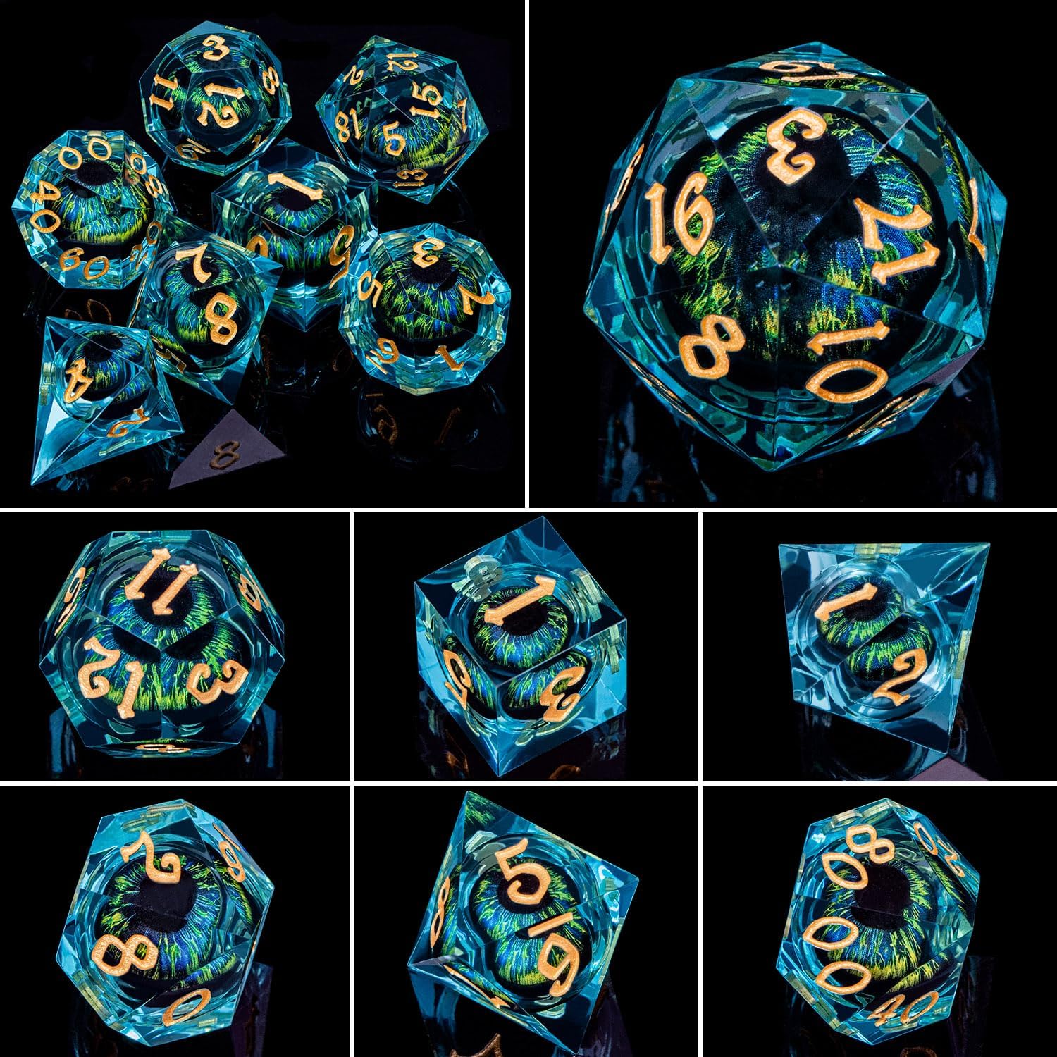 • 【Exceptional Handmade】:Each sharp dice is hand sanded and polished. The numbers on the dice are clear and easy to read, with perfect details and well-made. We use high-quality resin to make d&d dice, odorless, non-toxic, strong, safe. The polyhedral dice have no bubbles and are excellent balanced for a great gaming experience.