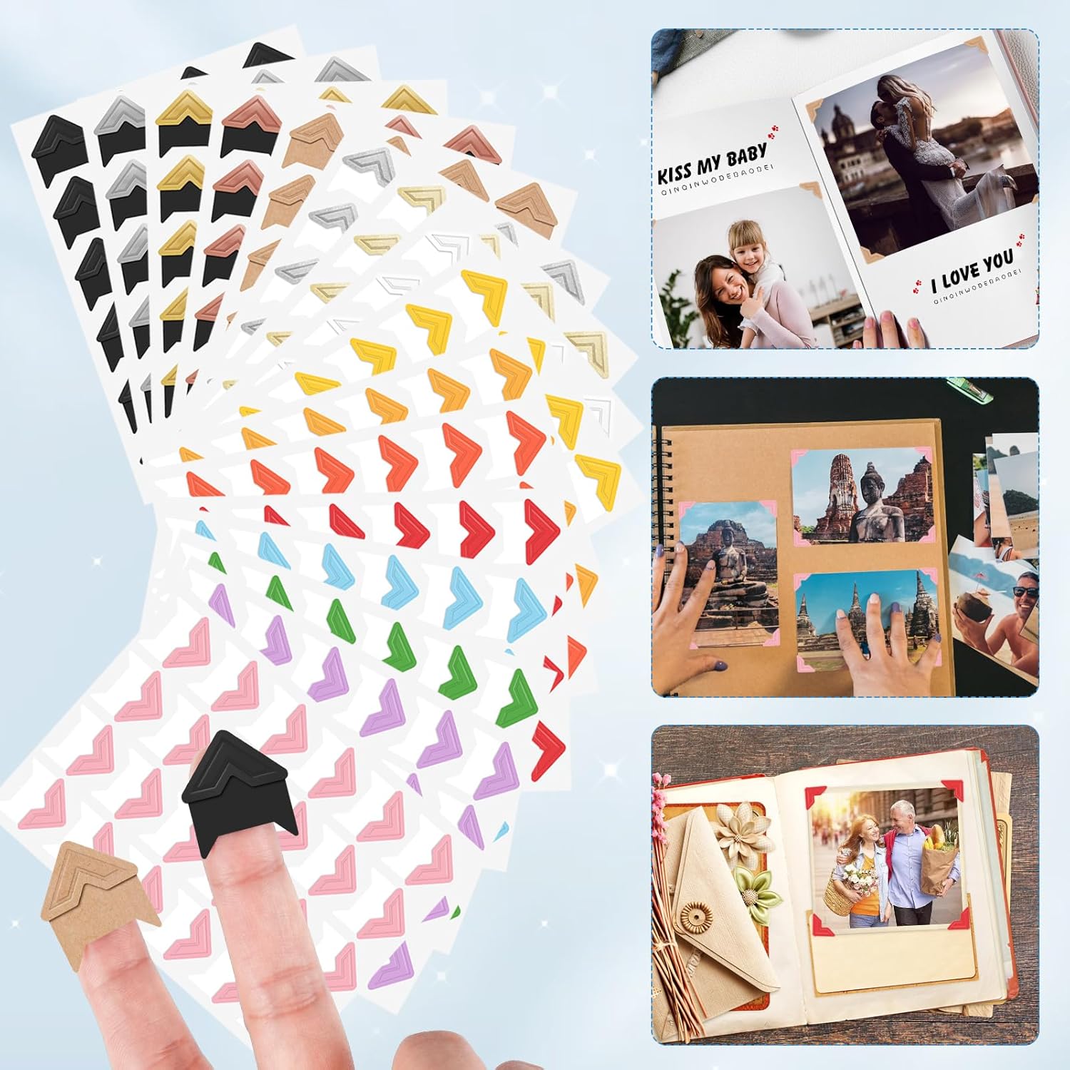 - Multiple Use: Self-adhesive picture corners for scrapbooking, albums, journals, photo walls, memory books, or invitations