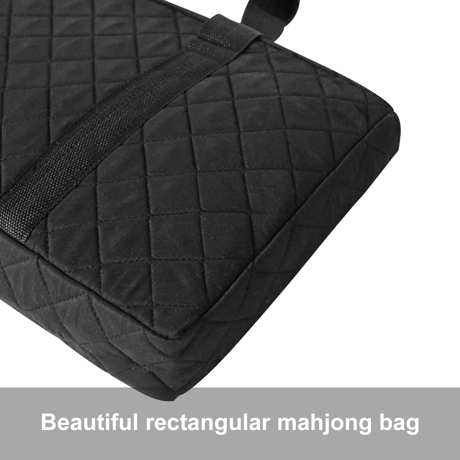 - Stylish Black Bag:Our mahjong set is neatly stored in a lightweight carrying bag. The bag features a special quilted design, adding an attractive and beautiful touch for any mahjong occasion. It is not only stylish but also highly functional, with a good zipper for easy opening, two sturdy shoulder straps for convenient carrying, and a small zippered pocket inside to store mahjong accessories. Take your mahjong set with you in this fashionable and practical bag.