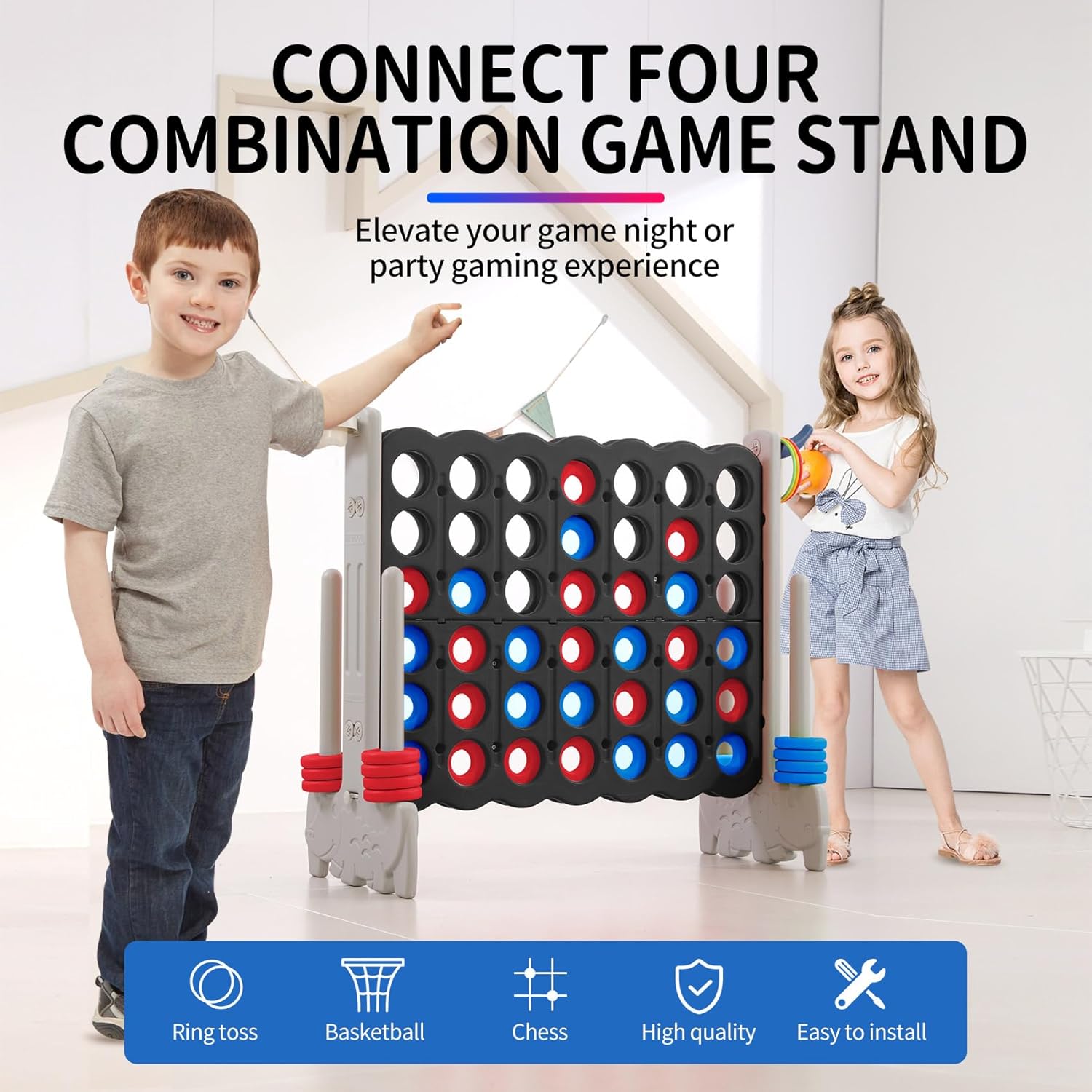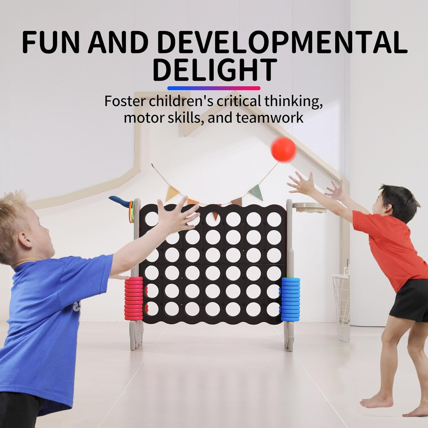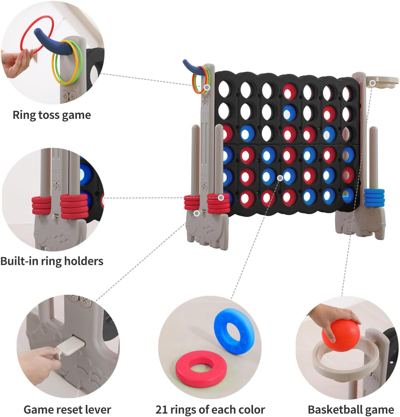 • Multifunctional Entertainment: Our 4 in a row game giant outdoor set is not just an outdoor connect game; it also features a built-in basketball hoop and ring toss. This versatile giant 4-to-Score game provides varied activities, enhancing the fun for all ages.