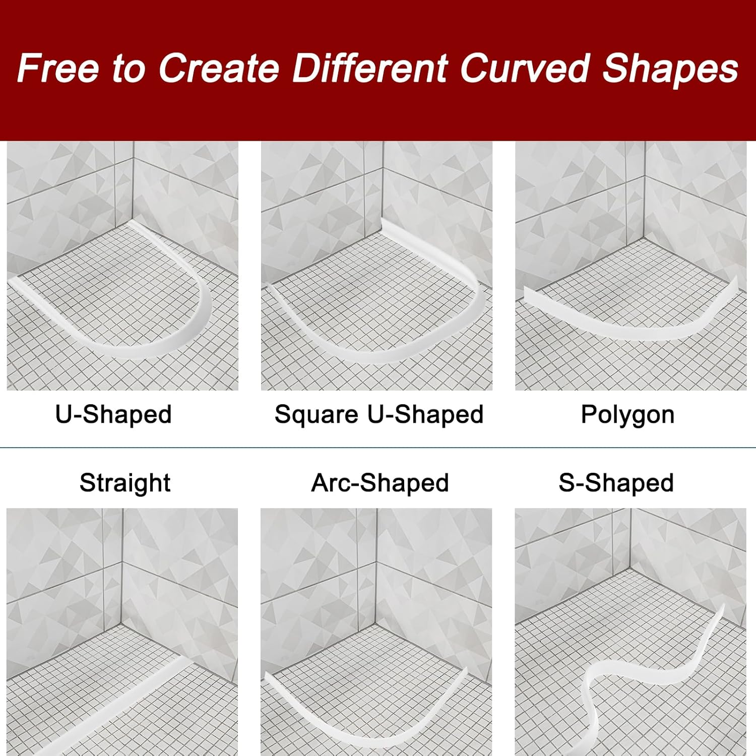- [Practical Design] - Our shower water barrier is a fan-shaped design with soft material that can easily create various curved shapes and cut to the length you need. Moreover, it comes with a self-adhesive backing that helps ensure the barrier stays securely on the surface, creating a waterproof seal that separates wet and dry, preventing water from leaking outside of the shower area.