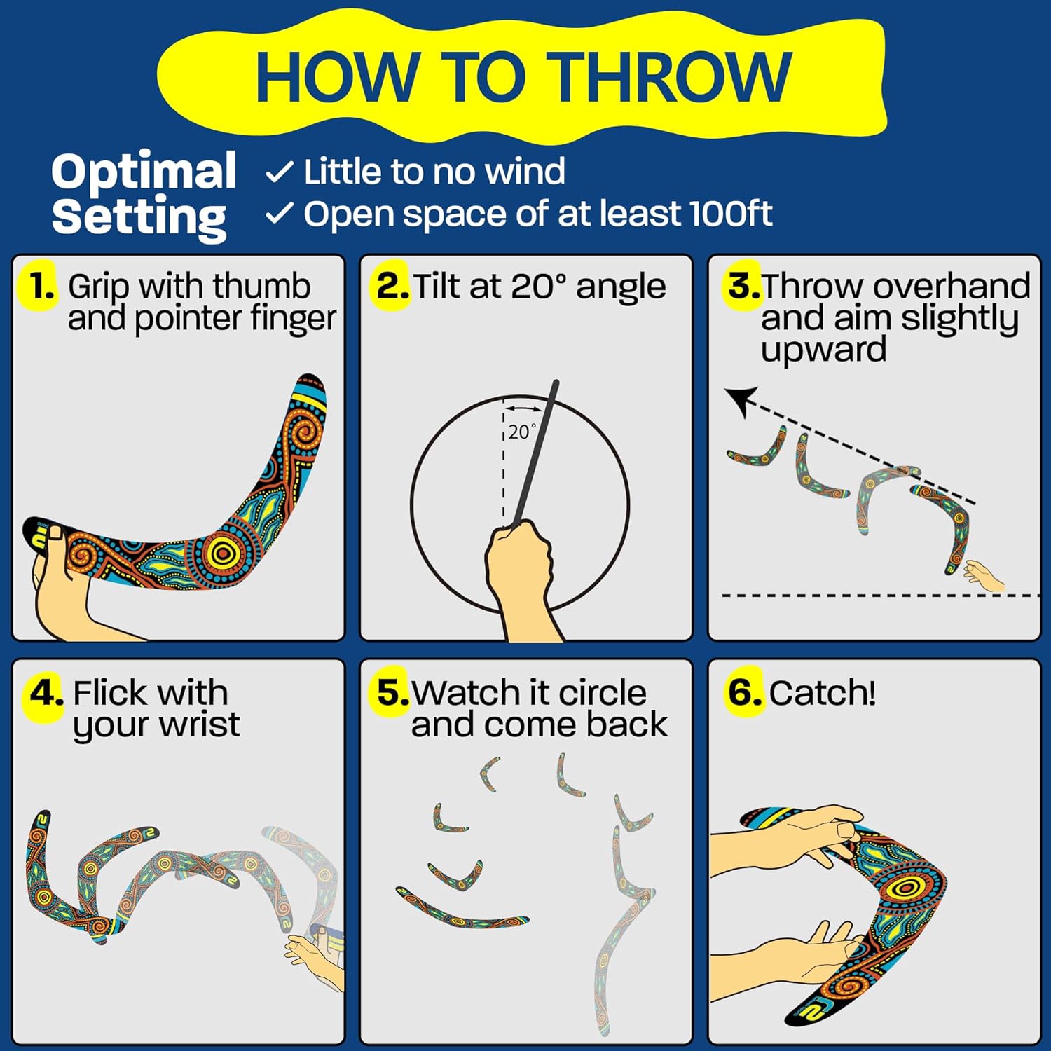 • ๐—˜๐—ฎ๐˜€๐˜† ๐—ง๐—ผ ๐—Ÿ๐—ฒ๐—ฎ๐—ฟ๐—ป - Embrace the simple joy of throwing a boomerang and having it come back to you with ease. With our beginner-friendly easy to throw design crafted from durable EVA foam. It's stable flight and comfortable grip make throwing and catching a breeze, ensuring a quick and enjoyable learning experience for ages 12 and up.