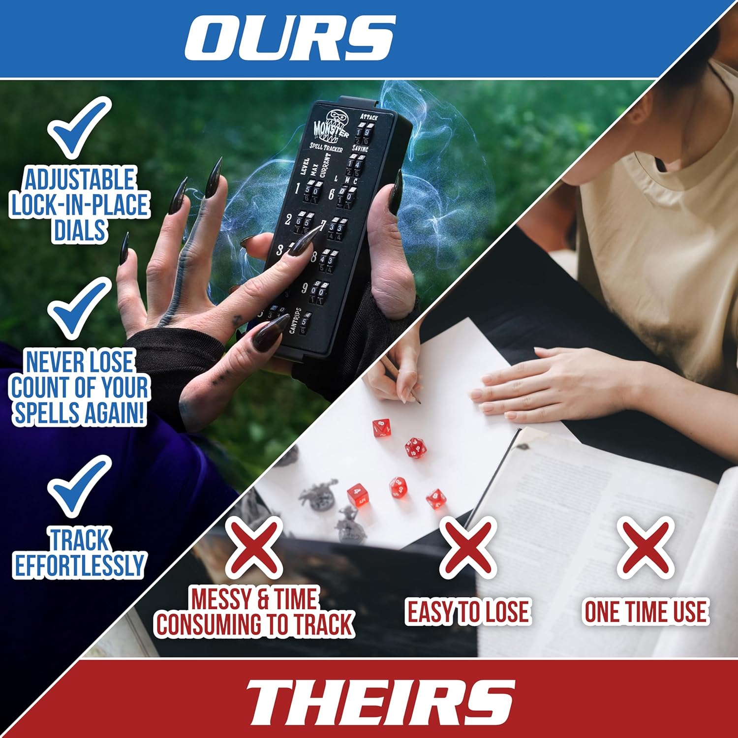 - Sleek and Portable Design: Designed for the adventurer on the go, our compact and lightweight RPG Spell Tracker fits easily into your bag, making it perfect for travel and quick setups at game nights