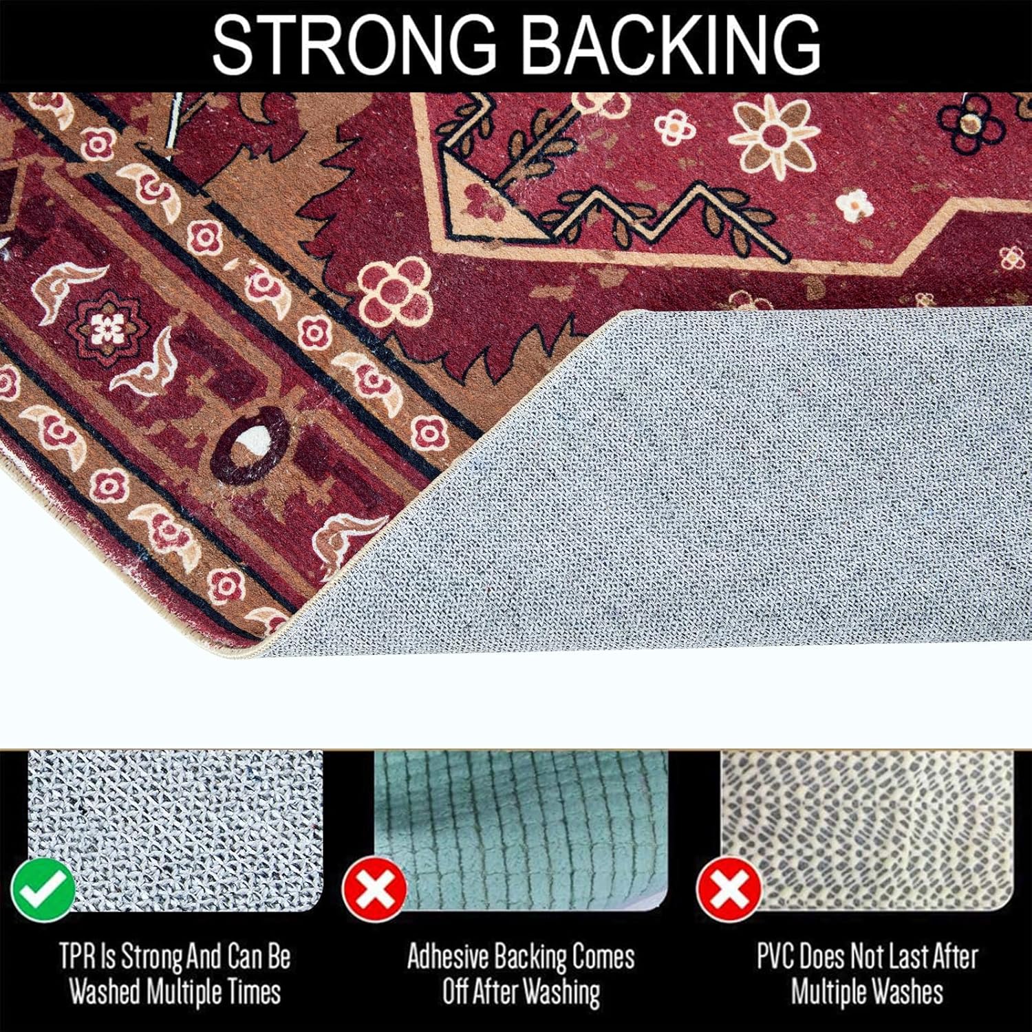 - -- NON SLIP ACCENT HIPPIE RUG -- Has upgraded the leopard rug's anti-skid features, adding thousands of anti-skid points on the back of the oriental carpet to prevent it from slipping or folding over when walking over it.