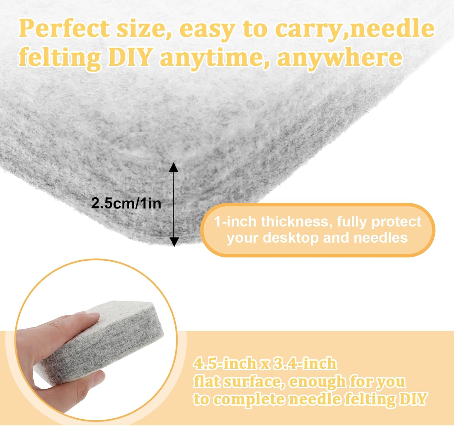 - 【Large Size】Our needle felting mat measures 11.7*8.7*2.5cm/4.6*3.4*1inch, which is thicker and more durable, not easy to fall apart, and will not collapse over time.