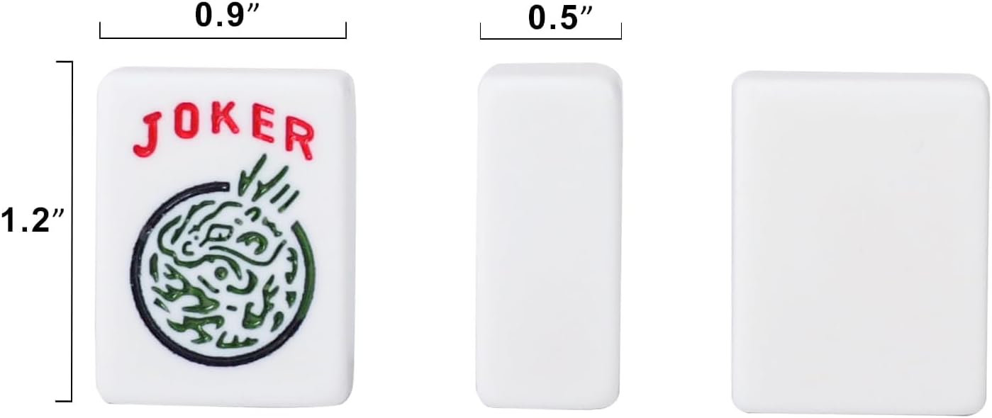 - Package Includes:Our American mahjong set includes 166 engraved tiles: 36 Dots, 36 Bams, 36 Cracks, 12 Dragons, 16 Winds, 16 Flowers, 10 Jokers, and 4 Blank Spares. Each tile measures 1.2" × 0.9" × 0.5". Additionally, the set comes with 3 dice, 100 money chips, a bettor, and a copy of the Mahjong manual. Please note that the small accessories are kept in the inside small pocket.