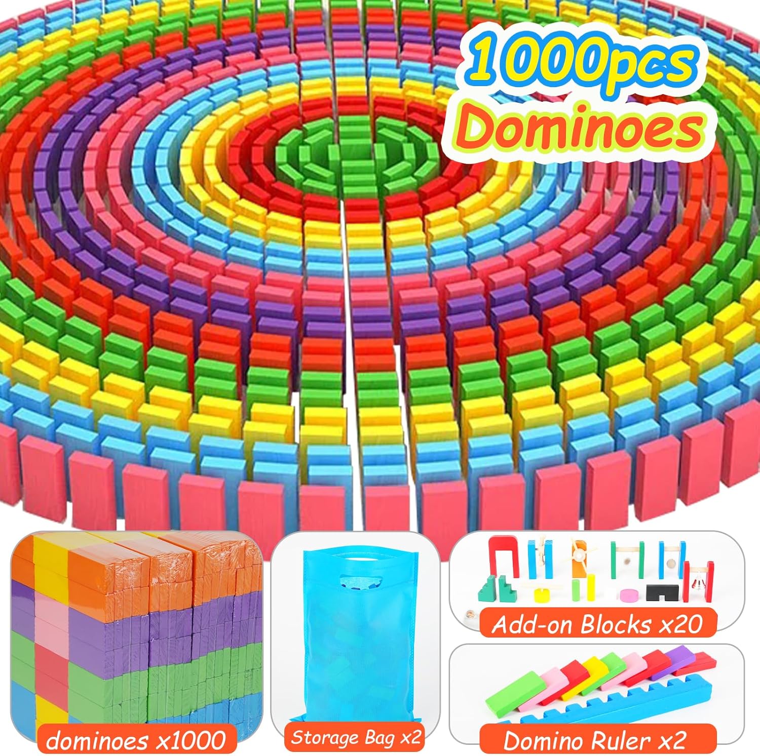 - Complete 1000-Piece Set – Includes 1000 high-quality wooden dominoes and 20 extra colorful blocks for even more creative possibilities, perfect for hours of fun and entertainment.