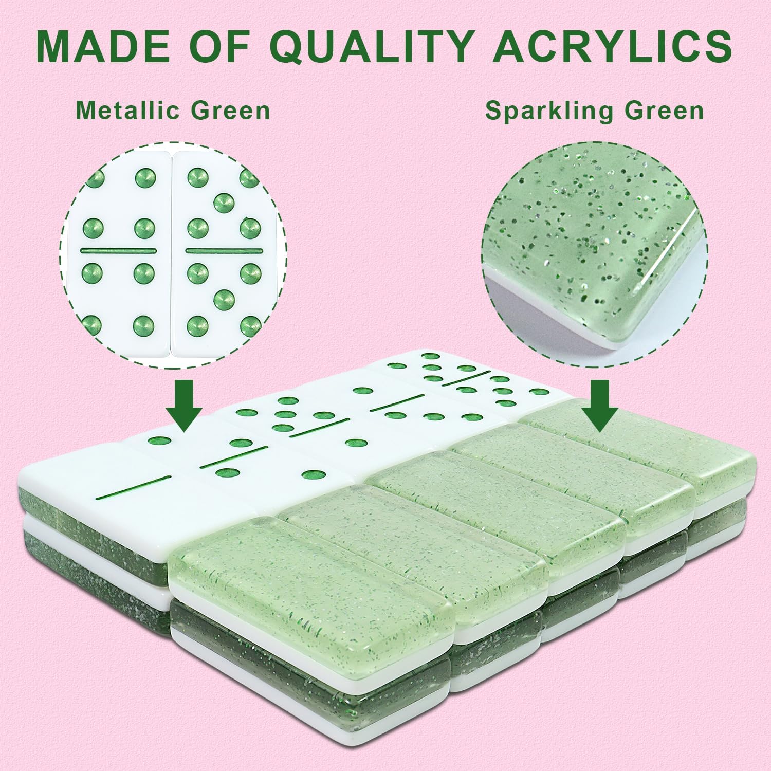 IDTQ Dominoes Set for Adults, Double 6 Dominos Game Set with 28 Domino Tiles Double with Upscale Gift Boxes -7 Polyhedral Dice -Classic Board Games (Light Green)