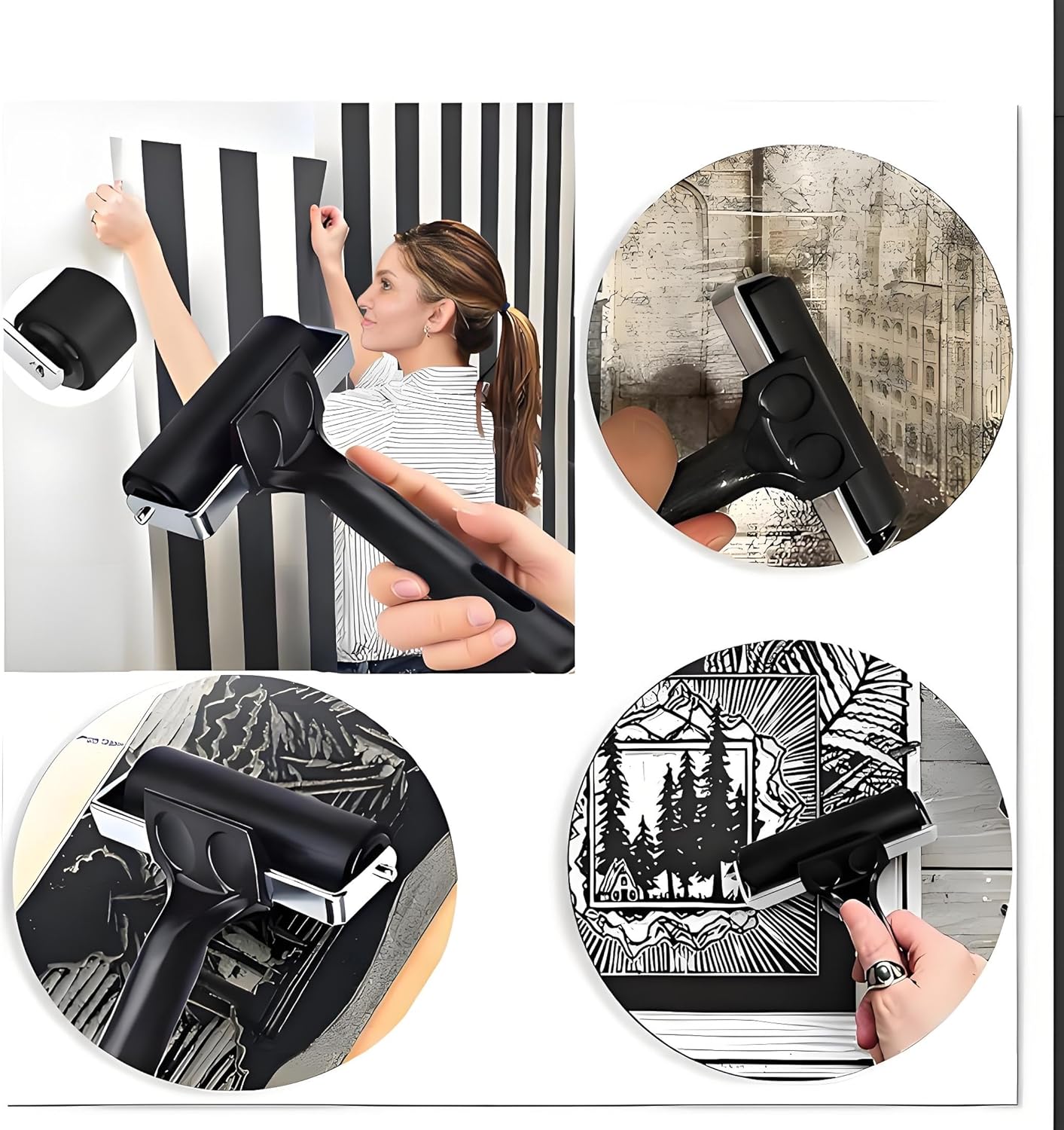 - 2.Elastic & Smooth Surface – Durable rubber roller ensures even ink, paint, or adhesive distribution. Achieve flawless results on wood, paper, vinyl, EVA marine flooring, or DIY projects without bubbles or streaks.