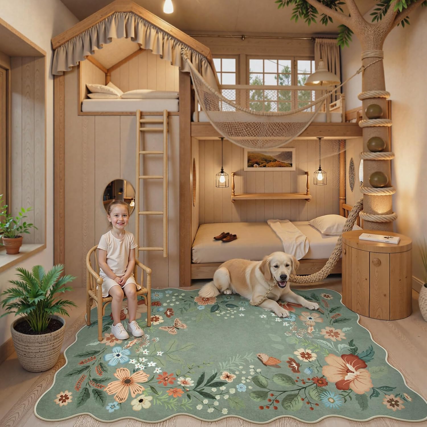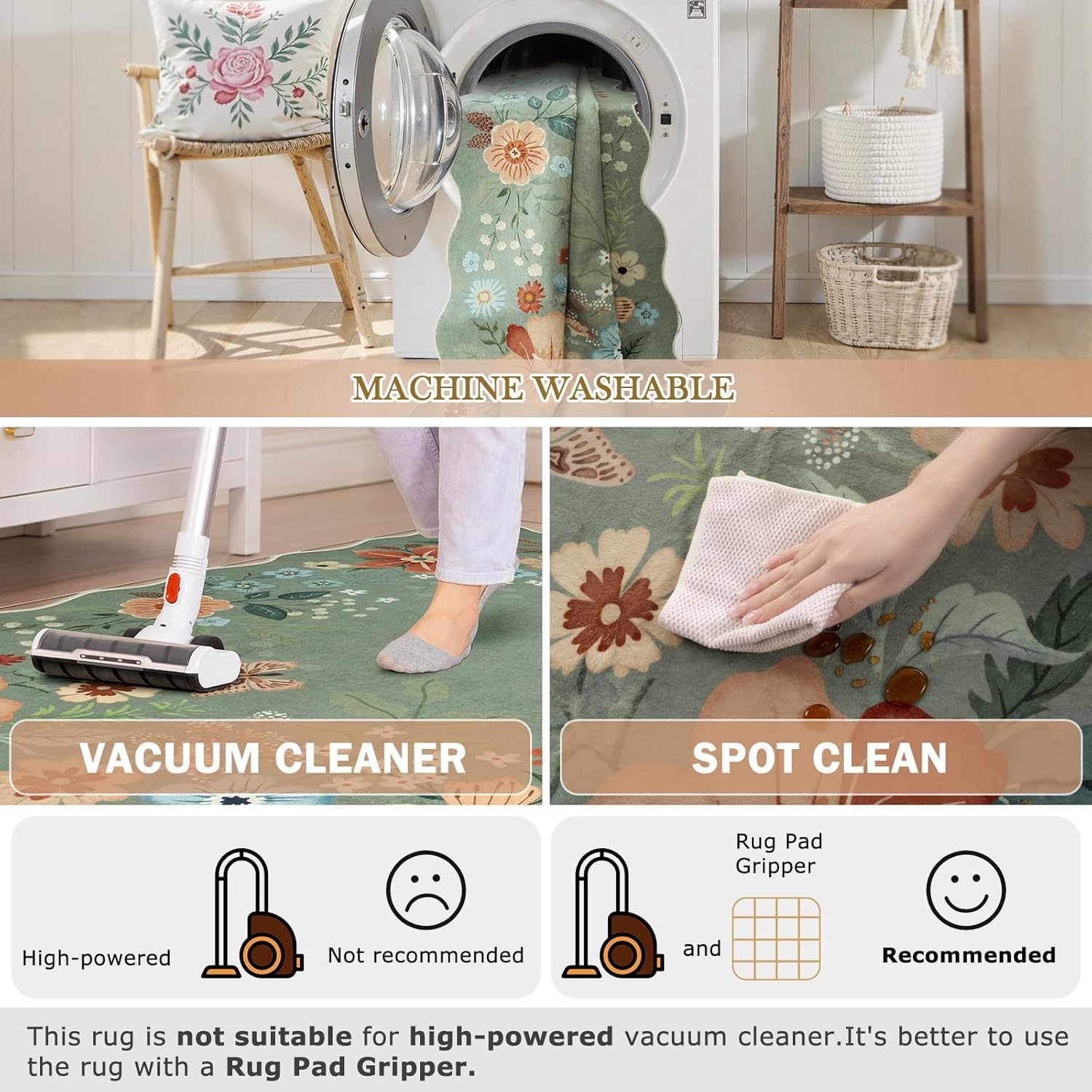 - Boho Floral Rug: Gorgeous and unique washable area rug, no more straight edges, delicate floral pattern adds a splash of color, adds beauty and class to any space, stylish and functional.