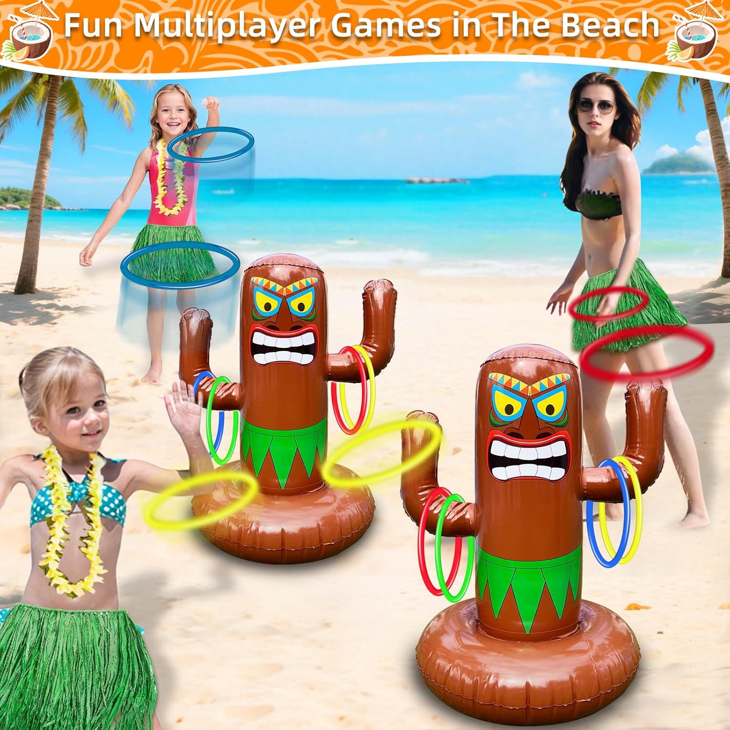 - Fun for All Ages: The Tiki inflatable ring toss game is perfect for any age group and a variety of occasions, including Tiki parties, Hawaiian-themed events, summer tropical parties, Aloha celebrations, family gatherings, and group activities