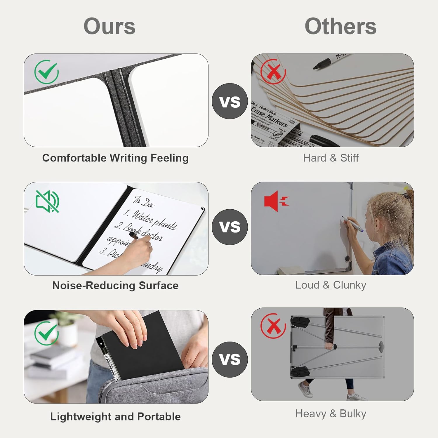 - 【Portable & Durable】The lightweight and compact design of portable white board means it fits neatly into bags or backpacks. Its sturdy construction ensures it will last a long time, so you can use it wherever inspiration strikes.