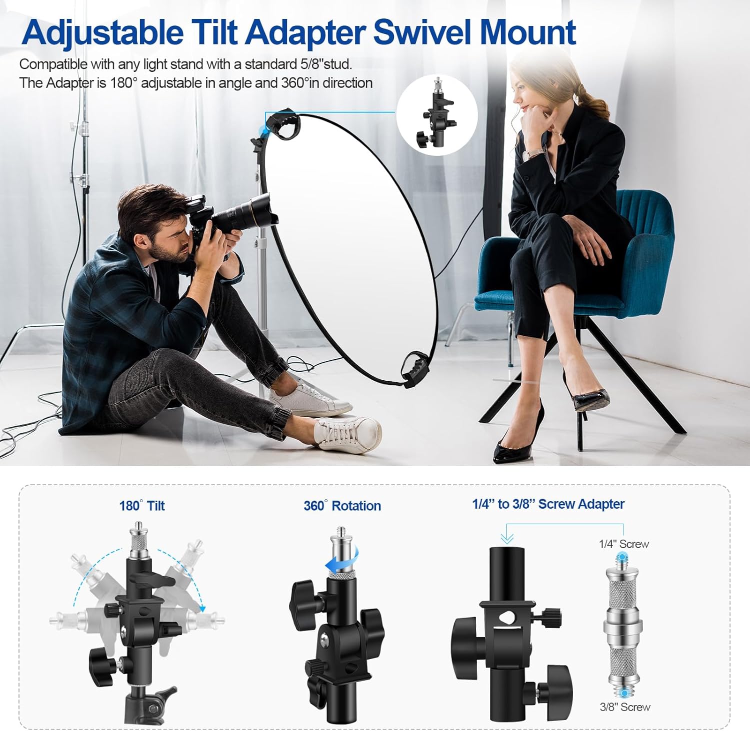 - 【EASY TO CARRY AND READY TO SHOOT】: the reflector folds down to just 12 inches and comes with a carrying case; the light stand is small, sturdy and stable, with adjustable leg angles and a folded height of 18.3 inches / 465 mm. Whether you are a travelling photographer capturing the beauty of the world, or a photography enthusiast on a daily trip, the kit is easy to take with you and start creating at any time.