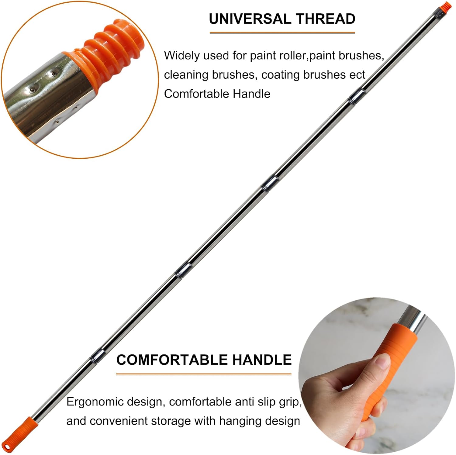 - Durable Construction: Our paint roller/Fruit Picker/Duster extension pole includes a 8-piece stainless-steel pole with threaded plastic connectors. The high-quality stainless steel ensures long-lasting use, while the plastic connectors provide a secure and stable connection.