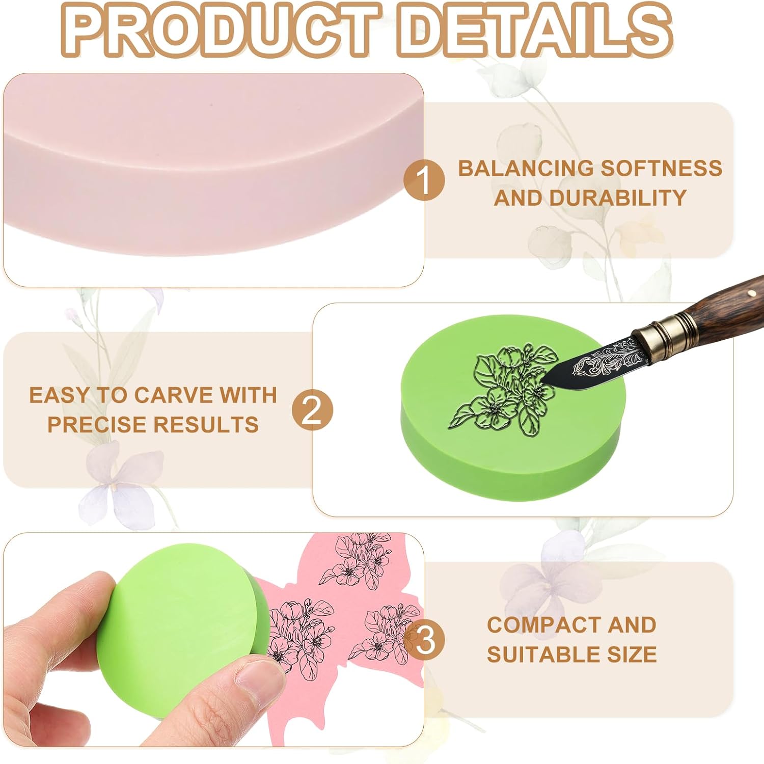 - Advantage: Rubber stamp block is soft yet durable, balancing softness and durability, easy to carve with precise results, suitable for complex designs and clear stamps. The material is flexible and resistant to cracks, ensuring the stamp is durable and reusable.