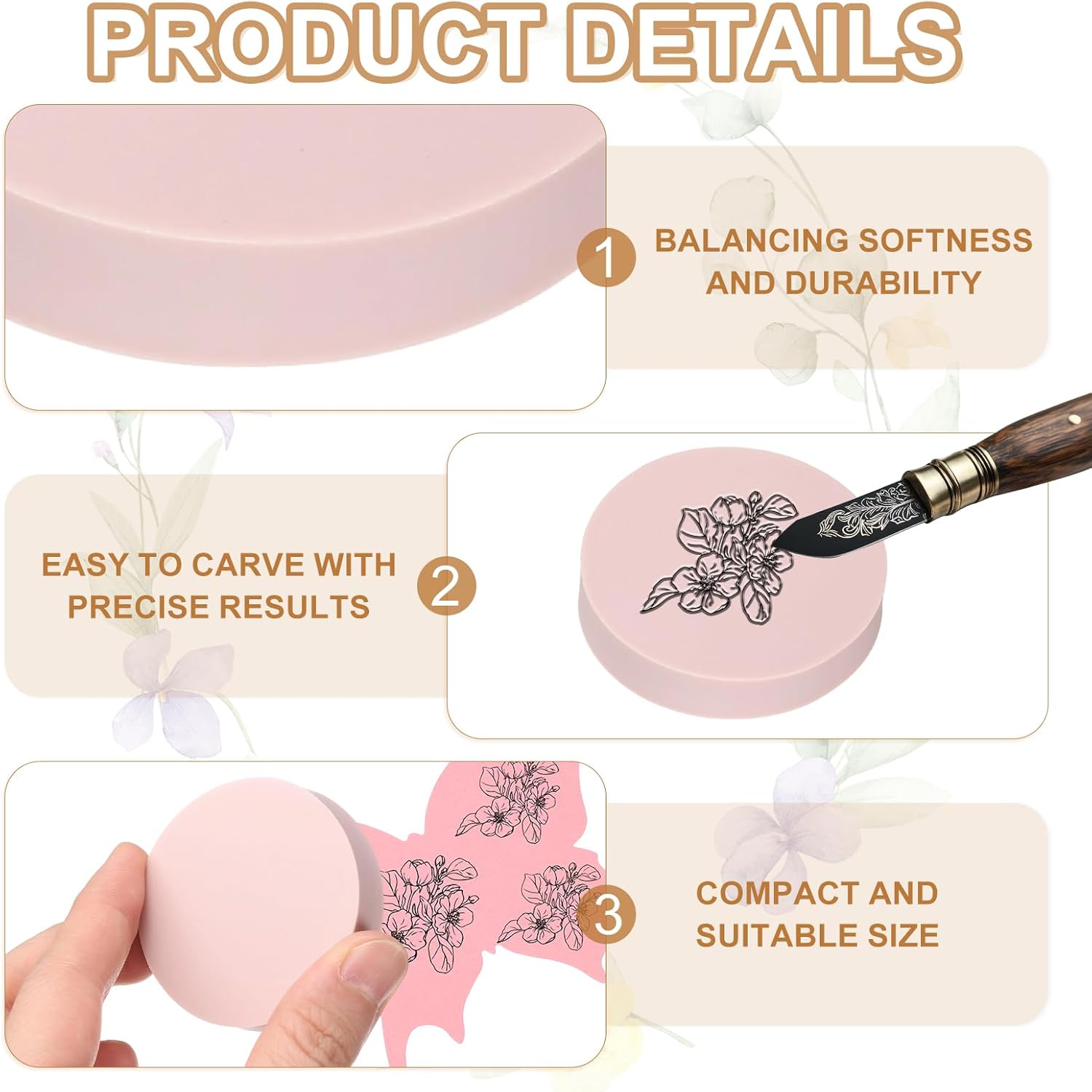 - Advantage: Rubber stamp block is soft yet durable, balancing softness and durability, easy to carve with precise results, suitable for complex designs and clear stamps. The material is flexible and resistant to cracks, ensuring the stamp is durable and reusable.