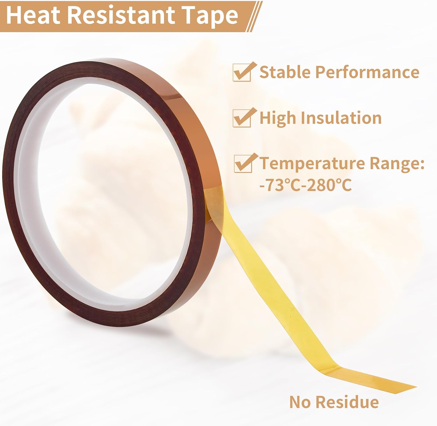- Durable Heat Transfer Tape: The heat tape for sublimation is crafted from polyimide film with a high-temperature adhesive, offering excellent heat resistance up to 536℉ (280℃). It peels off cleanly without residue and is easy to handle and apply.