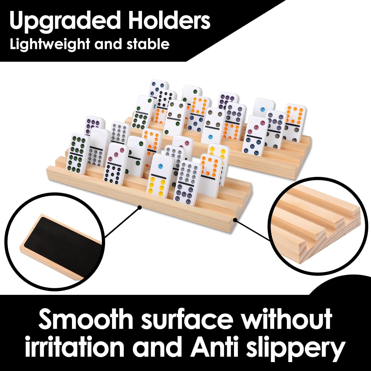 - 8 Wooden Holders: This set includes 8 solid wood holders, each with 3 angled slots to securely hold domino tiles upright or sideways. Track your game layout effortlessly and plan your moves—no manual adjustments or tile concealment needed