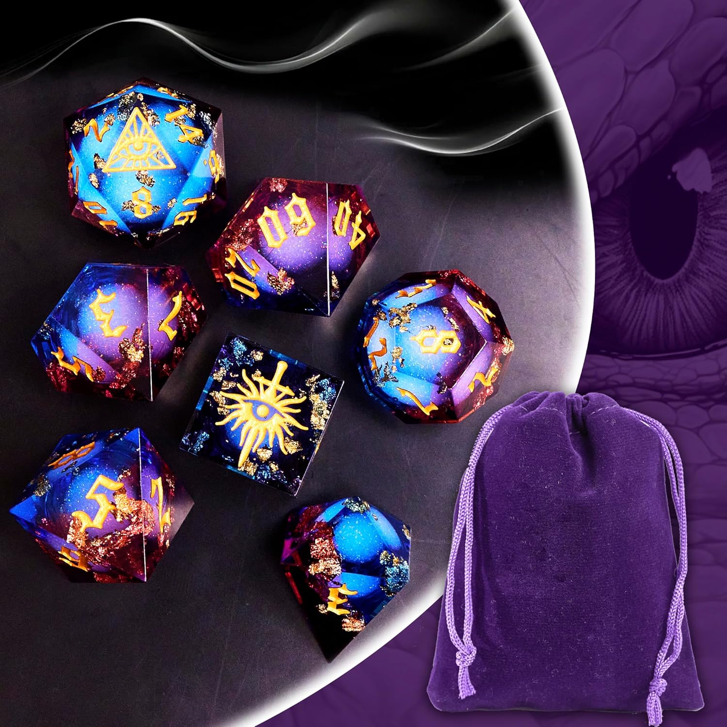 The Eye of Mystery Liquid Core DND Dice Set – Unique Resin Dice Set for Dungeons & Dragons – Red Blue Galaxy Dice Set for D&D Gifts