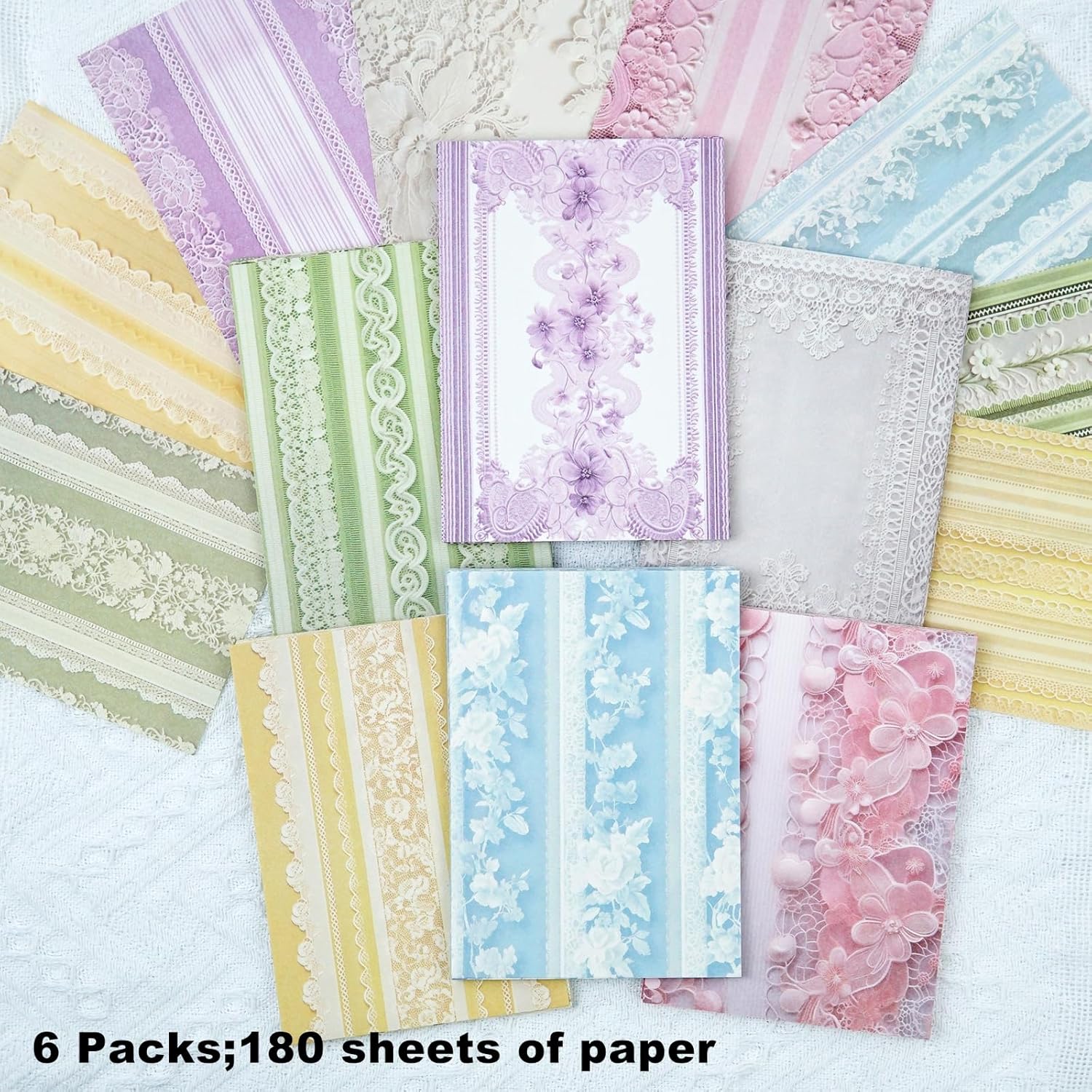 - Elegant Vintage Variety: Includes 6 themed sets with 180 sheets total (30 per set, 15 designs × 2), featuring delicate lace and floral prints that elevate your scrapbook and journal creations with soft vintage charm