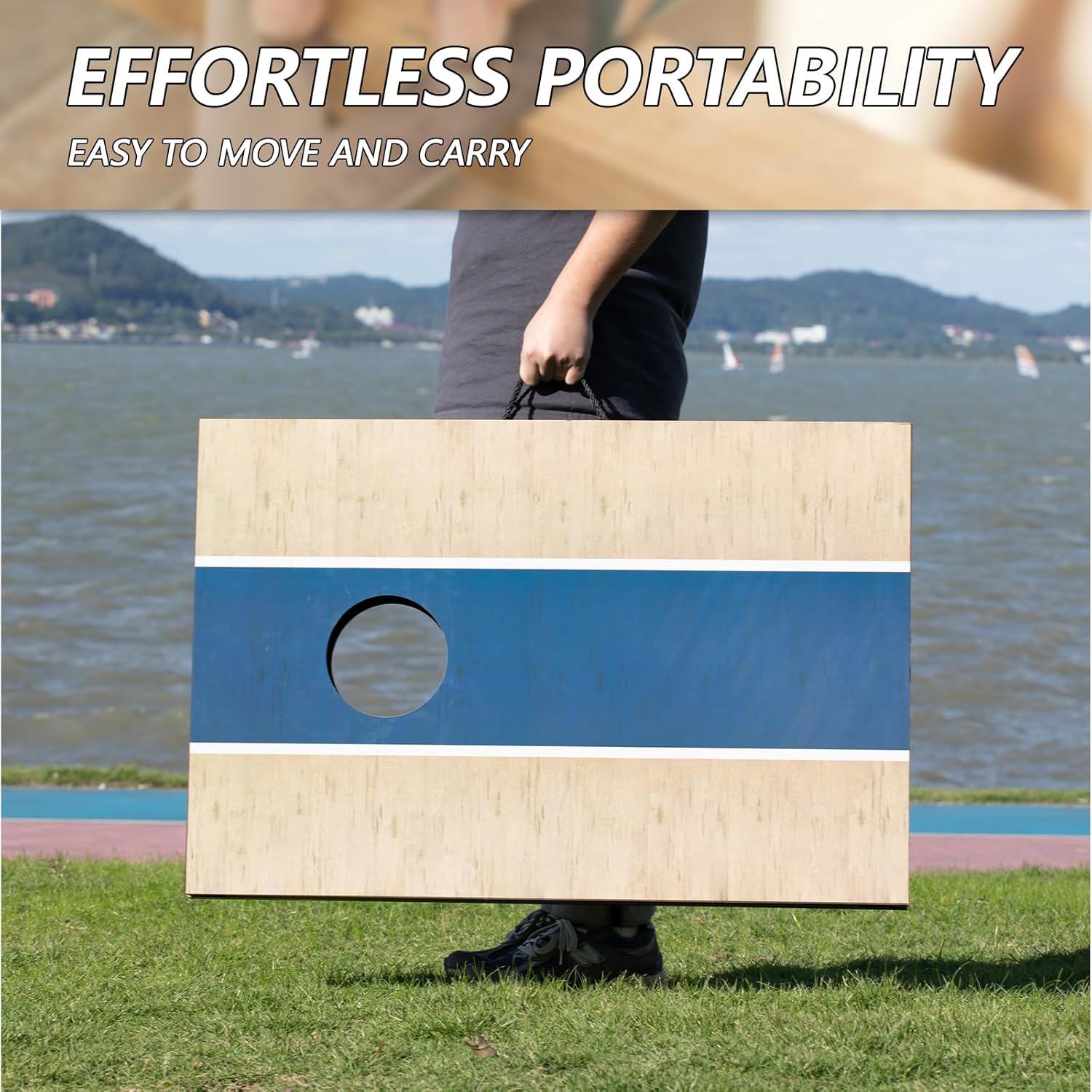 - CLASSIC CORNHOLE GAME SET:This complete cornhole set includes 2 foldable engineered wood cornhole boards (4’x2’), 8 all-weather regulation size cornhole bean bags (4 red + 4 blue). Perfect backyard and outdoor game for family and friends.