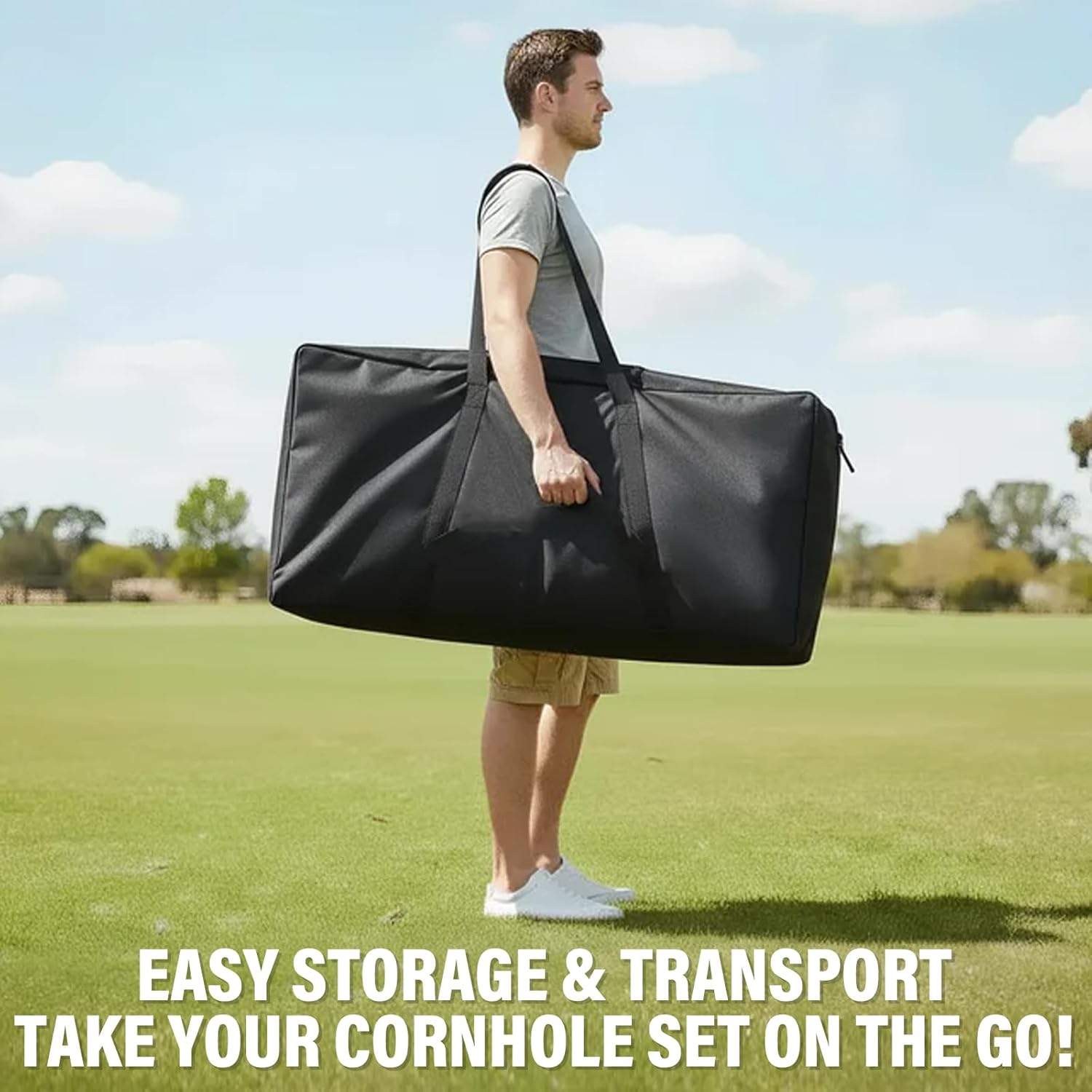 - Portability Cornhole Set-The regulation-size cornhole sets featuring a collapsible design with carrying case, and also include storage bags for the bean bags,making it convenient to transport and set up for outdoor activities like camping and tailgating