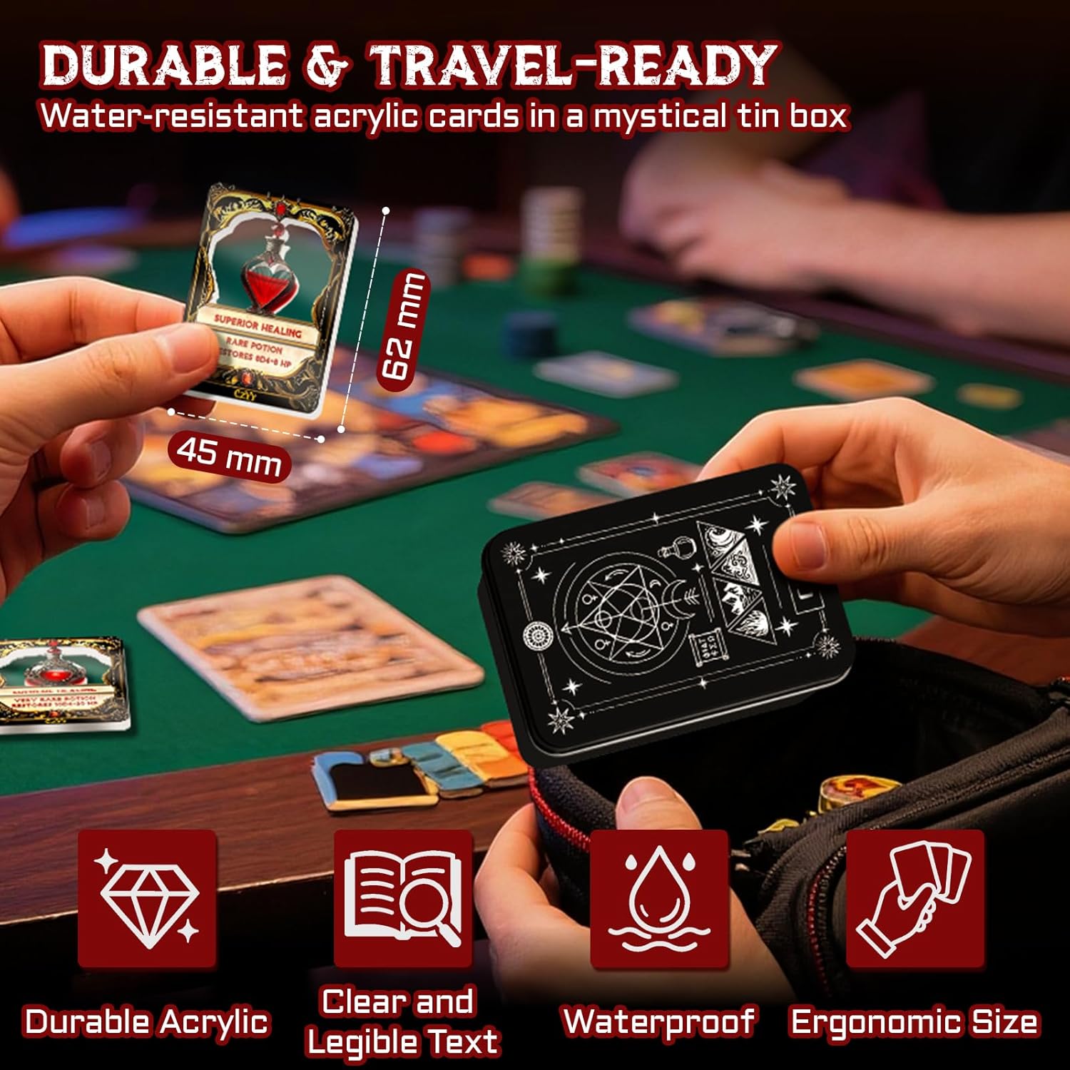 - IDEAL GIFT FOR DnD FANS & FANTASY COLLECTORS: Looking for the perfect gift for a DnD fan or fantasy collector? This Healing Potion Cards Set is a unique, thoughtful choice. Featuring 15 interactive acrylic potion tokens, it's the ideal gift for Dungeon Masters or anyone looking to enhance their game nights with a touch of magic.