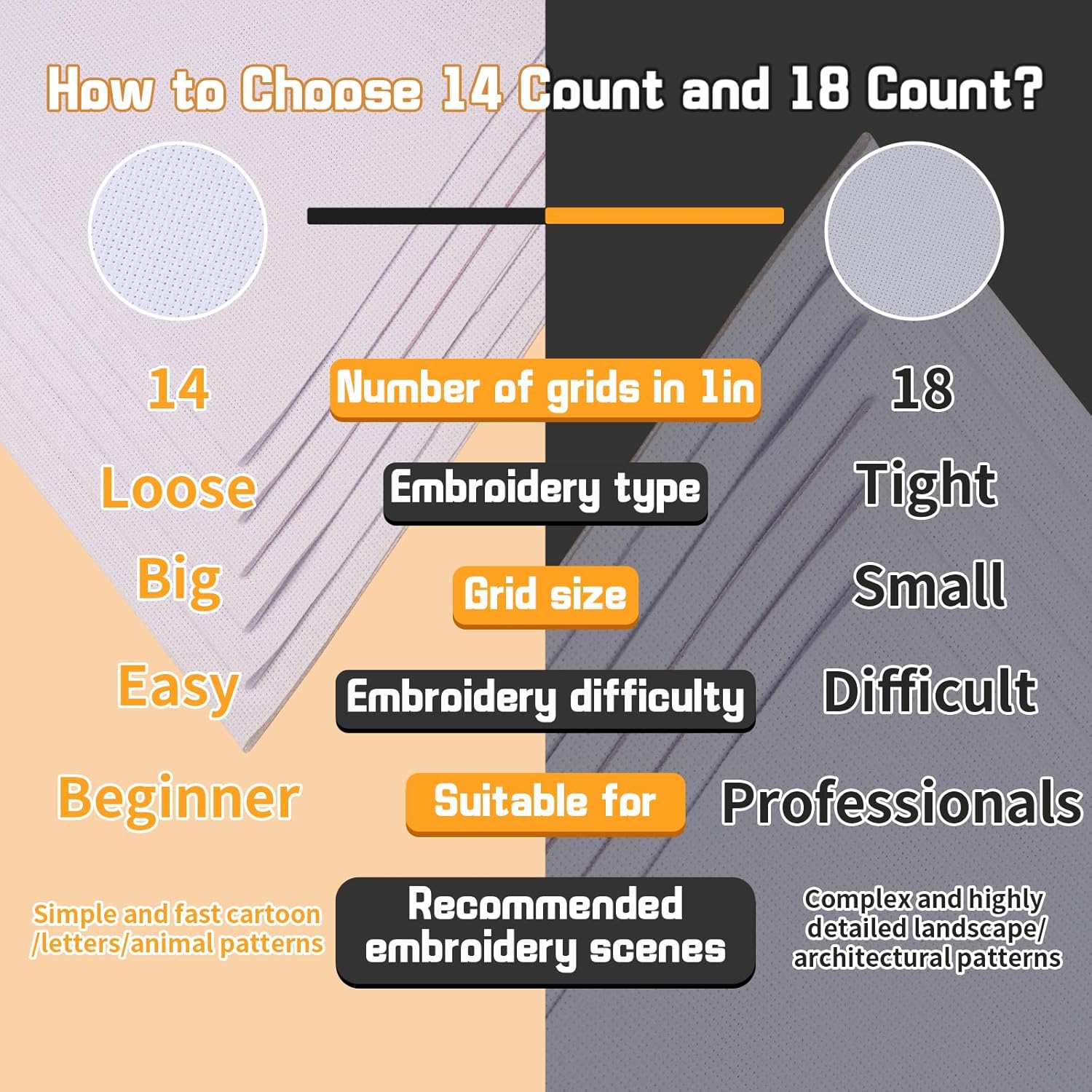 - High Quality Material: Our cross stitch fabric 14 count is made of soft, sturdy cotton that's easy to work with and won't fray. Even with frequent needlework or adjustments, the tightly woven embroidery fabric resists fraying, pilling. It washes well and keeps its shape, so your finished crafts work will always look nice