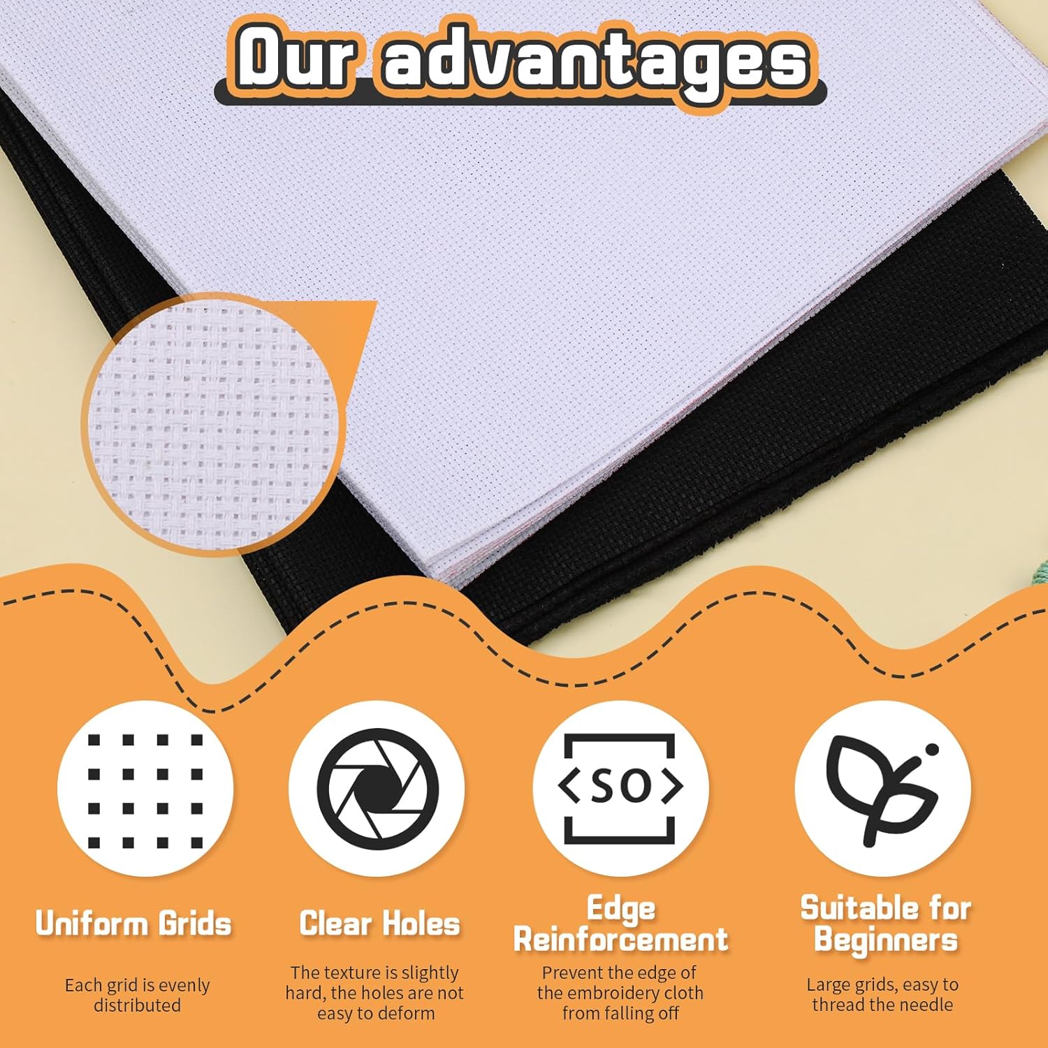 - Black and White Fabric: This cross stitch fabric comes in 2 colors, white and black. White is suitable for most cross stitch types, such as landscapes, cartoons, etc. The embroidery cloth has clear grids and is easy to cut and create embroidery projects. Black can be used to create some unique pattern embroidery, and the effect is also very good