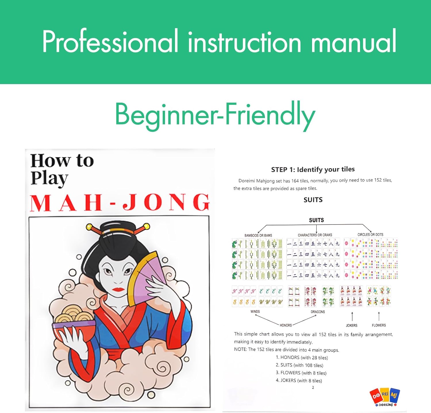 - Unique Design: Our mahjong tiles are different from the traditional American mahjong set, adopting a unique design style, which is more vivid and adds fun.The colorful manual helps you quickly grasp the rules, it's very friendly for beginners