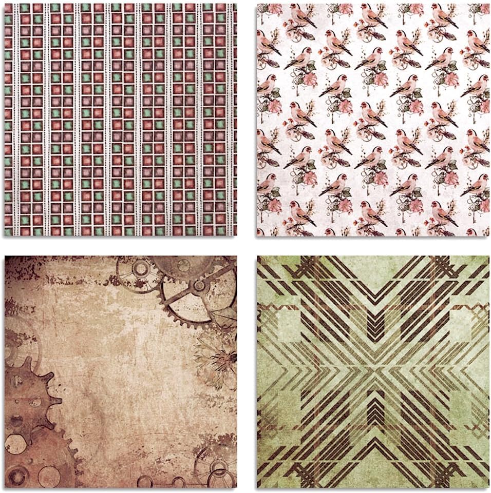 - Unique Vintage & Steampunk Designs: Explore 24 captivating 6x6 inch single-sided scrapbook papers featuring 12 distinct patterns inspired by vintage steampunk gears, keys, clocks, and rustic bohemian elements (2 sheets of each design).