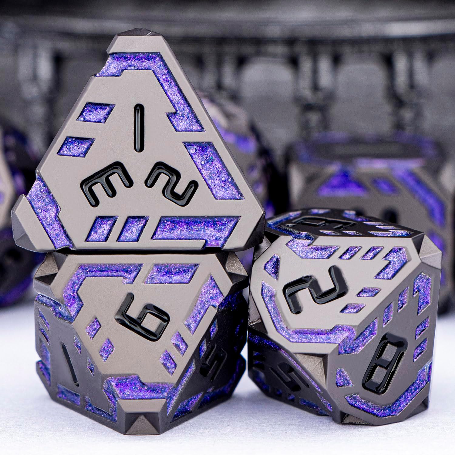 • Science Fiction Style : Designed with a future-tech theme, the dnd dice feature surface-etched stripes symbolizing pulsing energy streams of tomorrow. These dynamic lines traverse the facets, creating a unique ultra-modern, high-tech aesthetic.