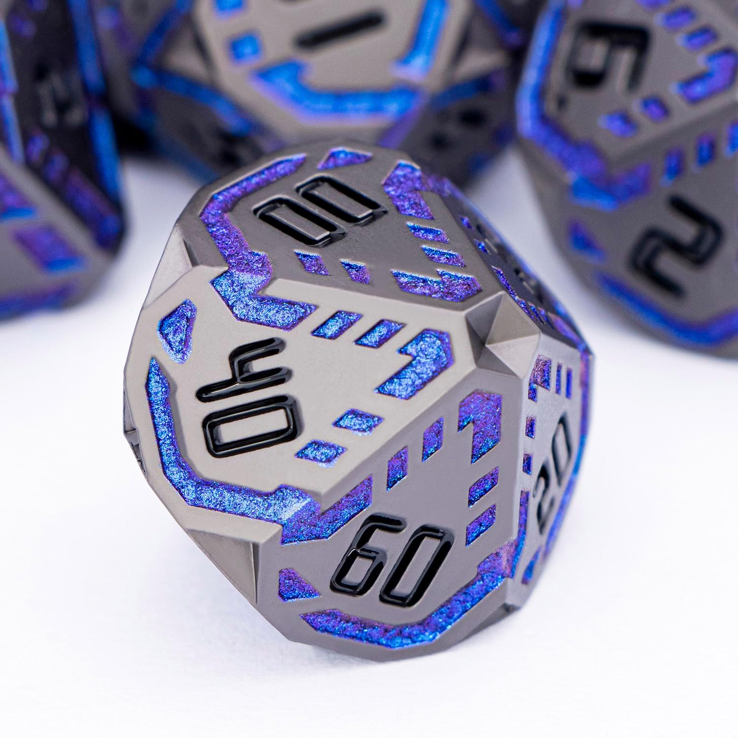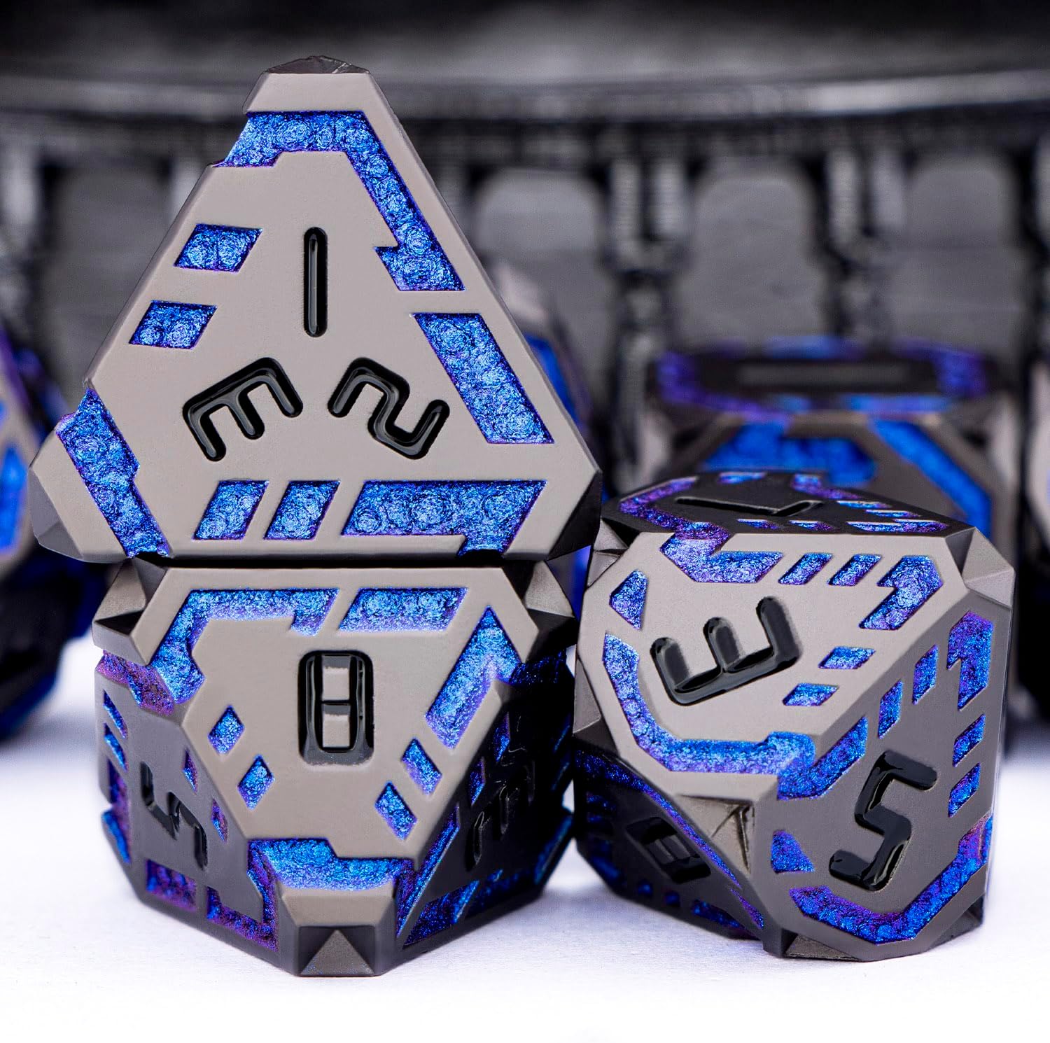 • Science Fiction Style : Designed with a future-tech theme, the dnd dice feature surface-etched stripes symbolizing pulsing energy streams of tomorrow. These dynamic lines traverse the facets, creating a unique ultra-modern, high-tech aesthetic.