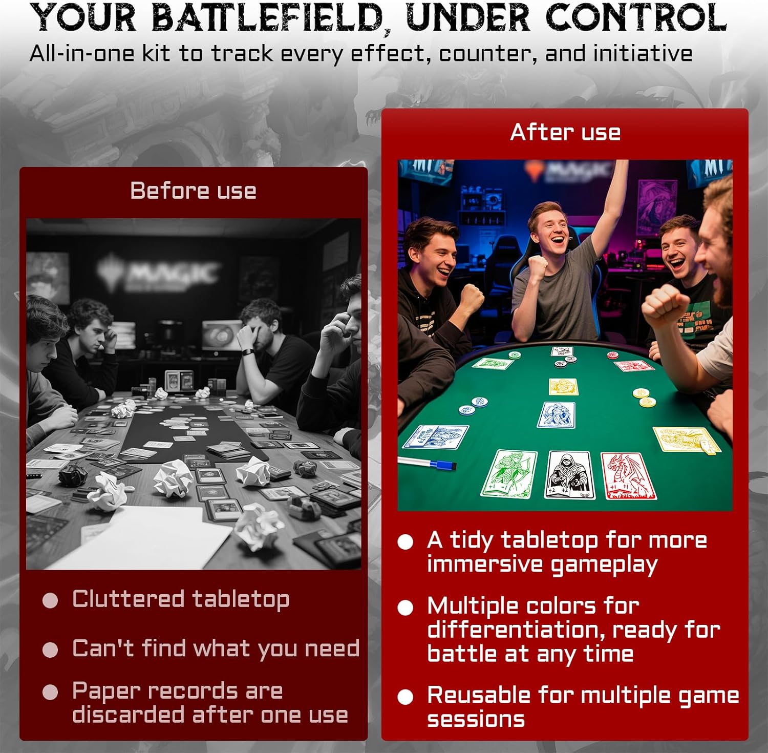 - ♻️ ECO-SMART & COST-EFFICIENT Stop buying disposable tokens! These double-sided dry erase surfaces survive thousands of wipes. Ideal for budget Commander decks or high-turnover game stores.